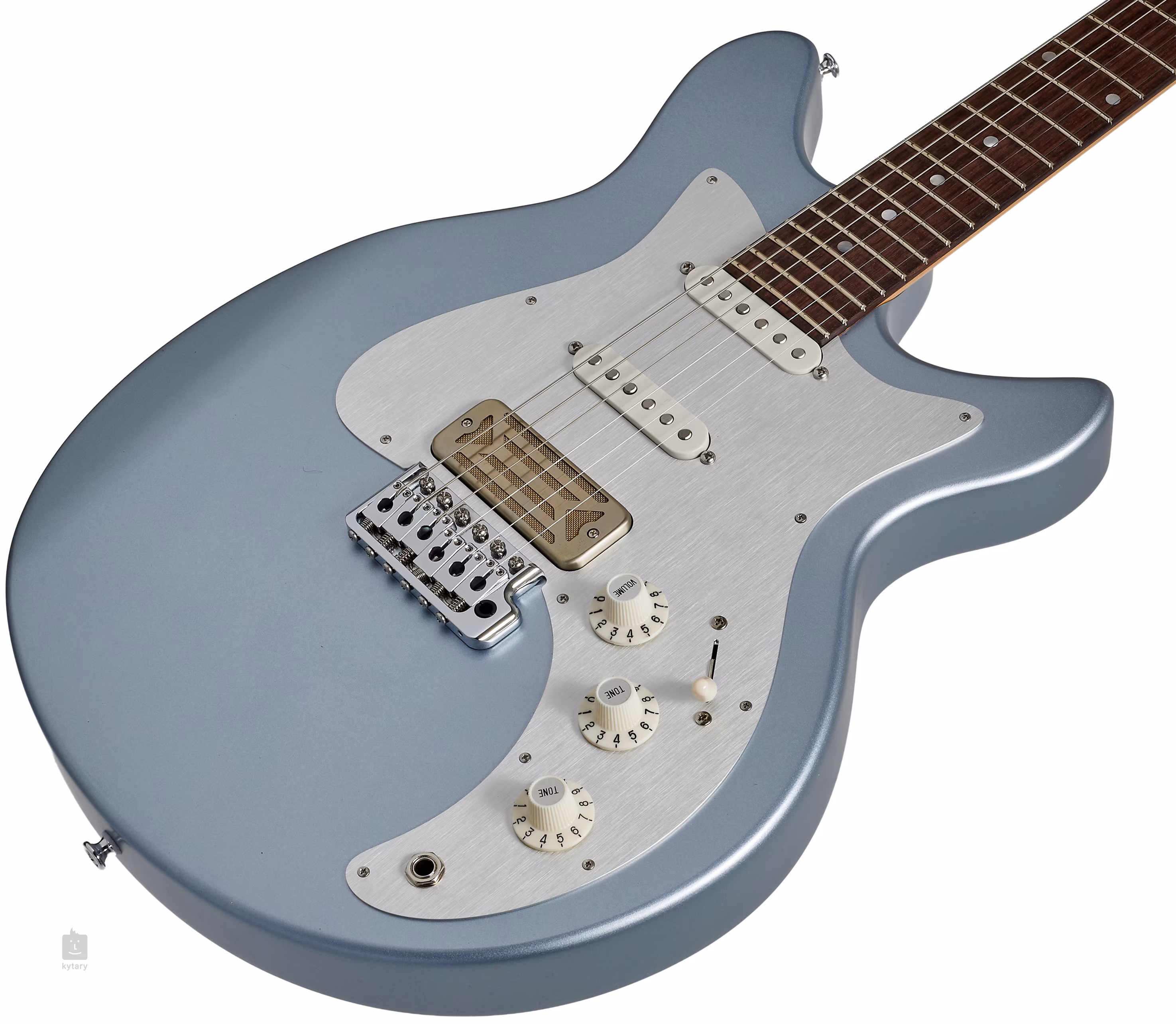 Egy egyedi aranyfóliás szappanos humbucker és két Tonerider zajtalan egymásra helyezett single-coil hangszedő széles hangzásvilágot biztosít a gitárnak, amely a legkülönbözőbb zenei stílusokban is megállja a helyét. A hangzás karakterét a szabványos potenciométerek segítségével állíthatod be. A stabil hangolást és a jó kitartást a húroknak a csont nulla bundon keresztül történő rögzítése biztosítja hat in-line mechanikával és egy Aumsen lebegő tremolóval, sárgaréz blokkal. A szép kivitelezést az ezüst eloxált alumíniumból készült pickguard és a nikkelezett hardverek hangsúlyozzák.