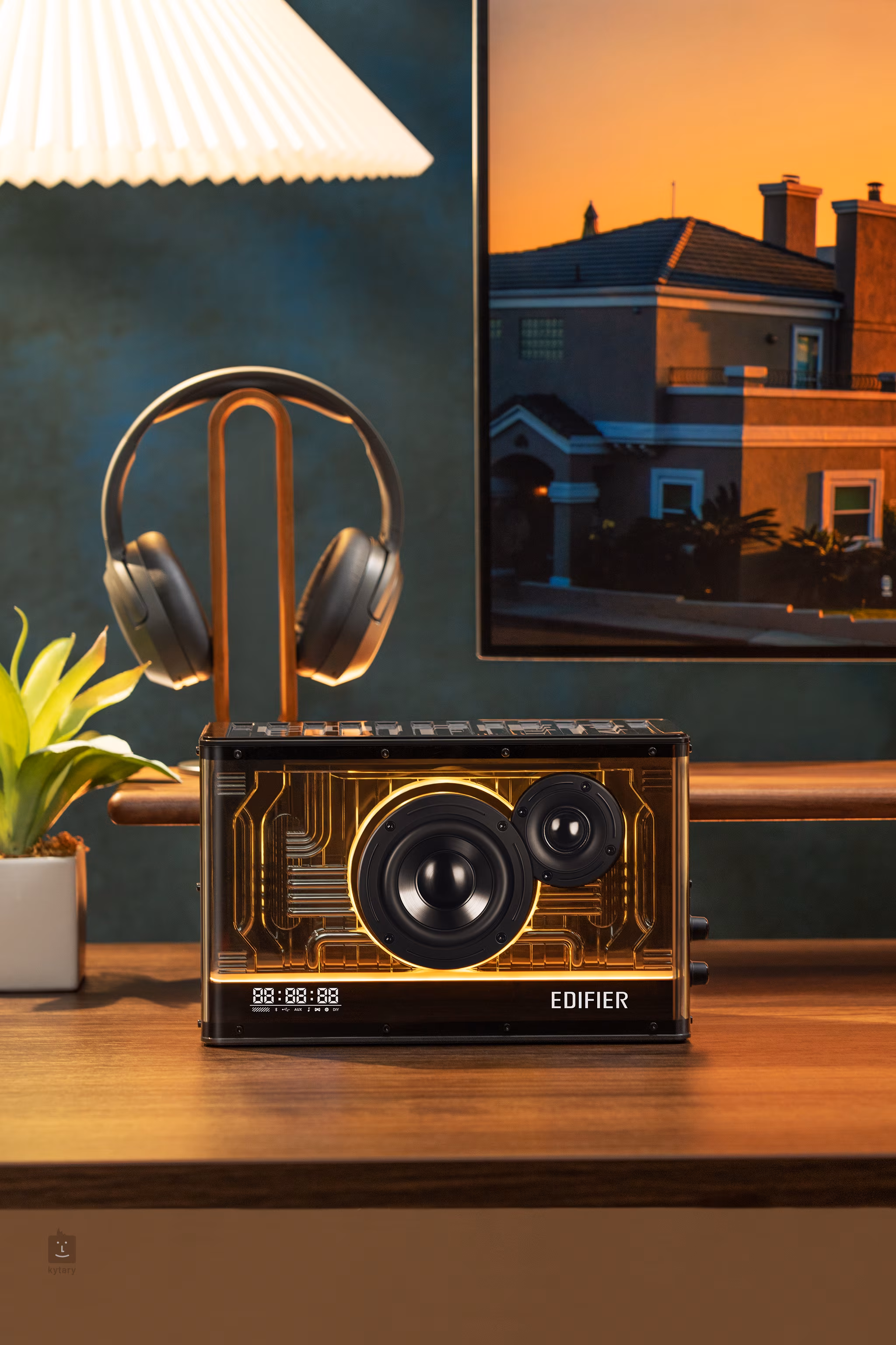 Az Edifier QD35 egy modern és stílusos otthoni hangszóró egyedi kialakítással, Bluetooth-kapcsolattal és digitális órával.