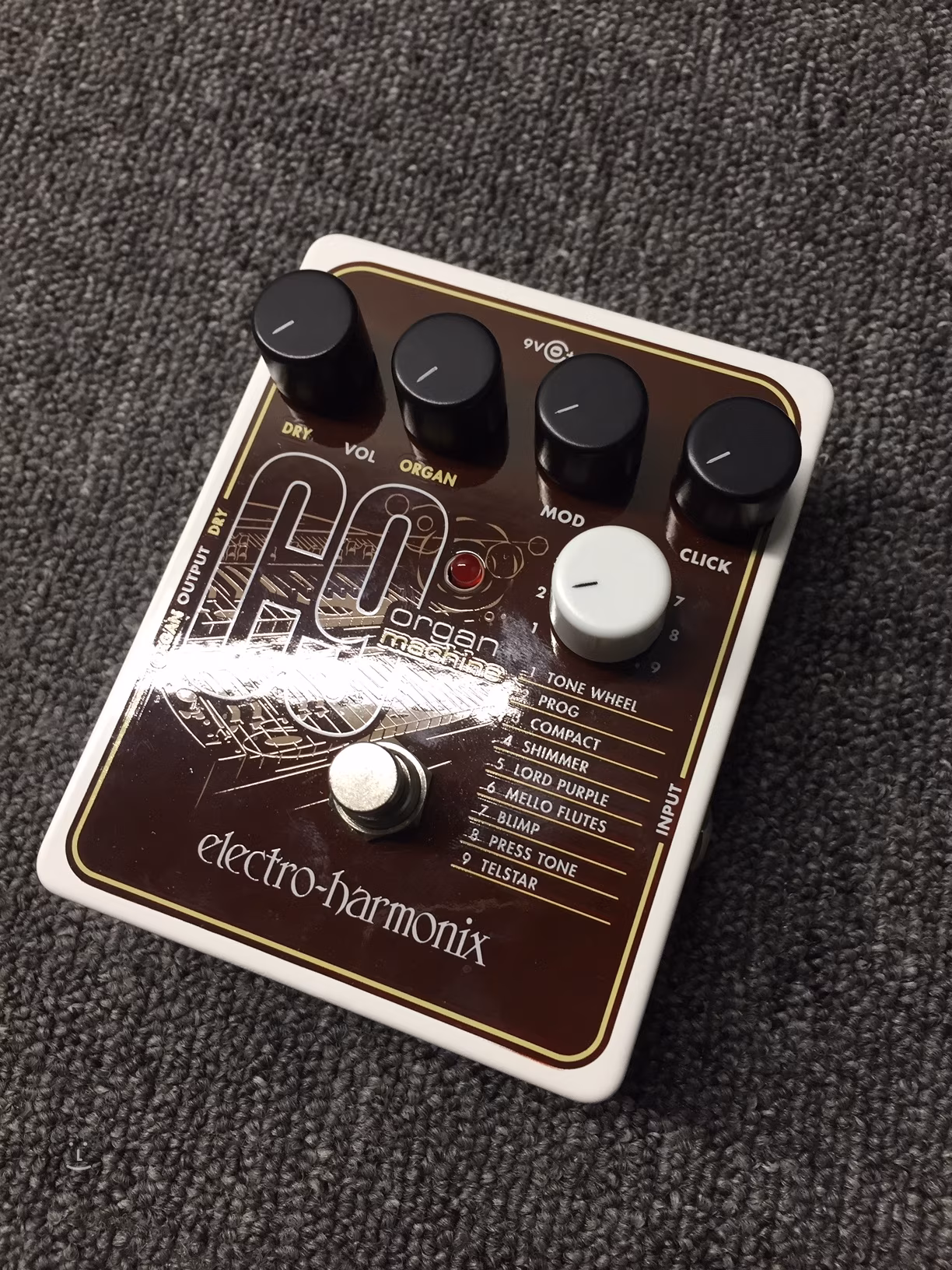Az Electro Harmonix C9 pedál effektje az elektromos gitárt valósághű hangzású orgonává és más elektromos billentyűs hangszerré (mellotron, klaviolin) alakíthatja. A doboz összesen 9 előbeállítást kínál (Tone Wheel, Prog, Compact, Shimmer, Lord Purple, Mello Flutes, Blimp, Press Tone, Telstar), amelyekkel a The Beatles (Strawberry Fields Forever - Mello Flutes, Let It Be - Press Tone), Doors, Deep Purple, Tornadoes (Telstar) és más híres együttesek és előadók híres felvételeinek orgonáinak és más elektronikus billentyűs hangjait tolmácsolhatja gitárján.