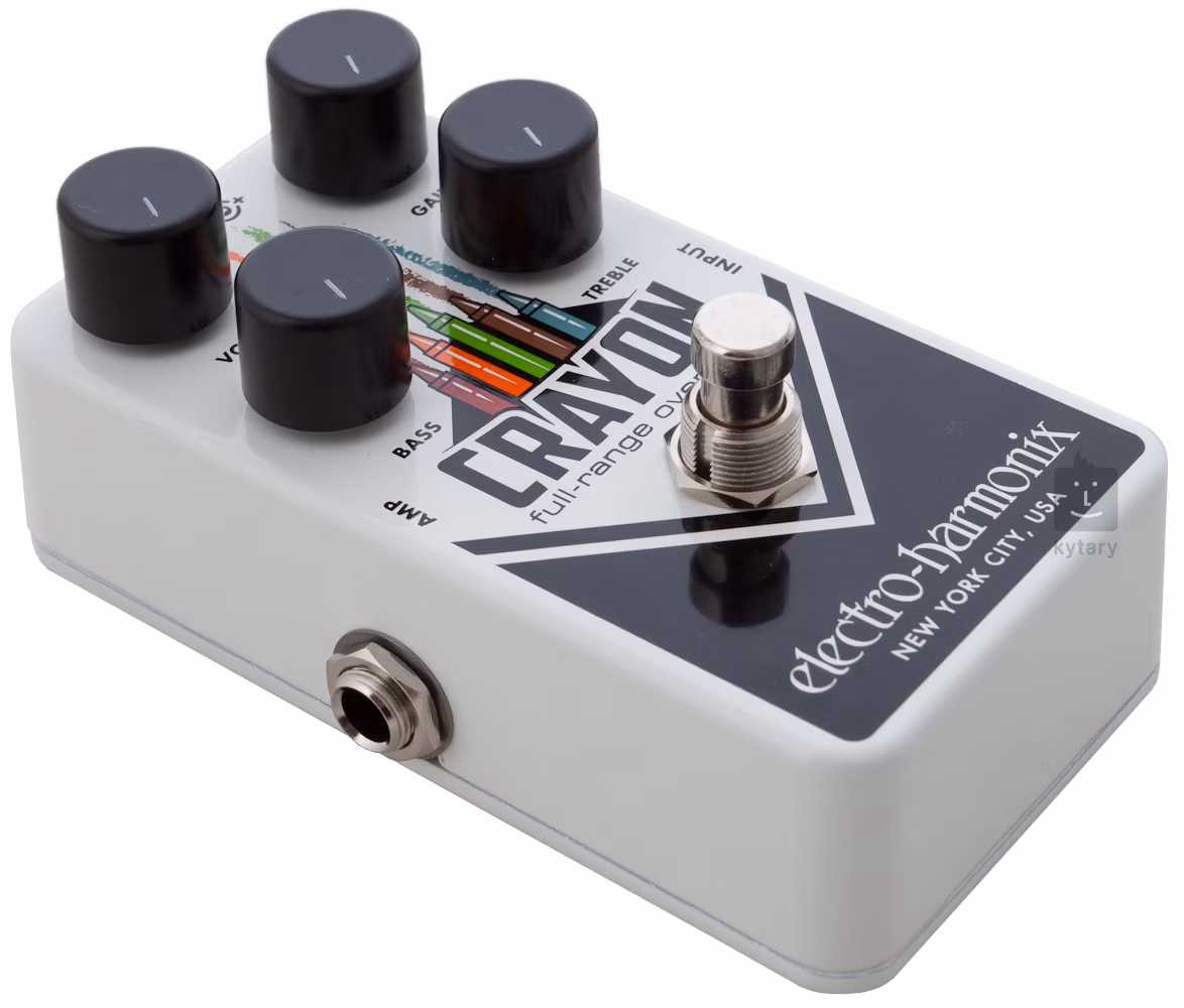 Az EHX Crayon egy sokoldalú, kompakt overdrive pedál, amely (akárcsak a nevében szereplő zsírkréta) megfesti és kitölti a gitárhangzást. Egy kétsávos equalizer (basszus, treble) és a kimeneti hangerőt és a gain/overdrive szintet meghatározó potenciométerek segítségével alakíthatod ki a hangzásodat. A doboz szolgáltatásait így univerzálisan igénybe vehetik azok a játékosok, akiknek szükségük van a hangzásuk kissé megfűszerezésére, valamint azok a gitárosok, akik nem veszik ki a gitárjukat a tokból anélkül, hogy ne látnának egy rendes rock torzítást. Az elérhető 76-os és 69-es modellek csak a váz grafikai kialakításában különböznek egymástól.