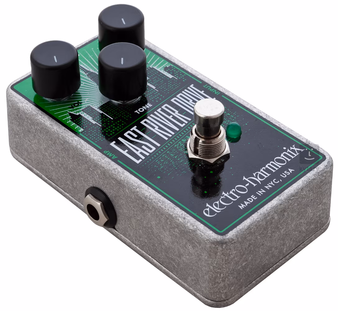 Az EHX East River Drive egy JRC4558 chippel ellátott overdrive effekt, amely a gitárhangodnak több teltséget és ragyogást ad, miközben felrúgja a rigedet, és egy szaftosabb rock overdrive-ot hoz ki belőle. Akár egy tiszta boostra, akár egy könnyed bluesos overdrive-ra, akár egy szép harapós rock crunch-ra van szükséged amerikai lenyomattal, az East River Drive a pedál tetején lévő New York-i sziluettel mindezt tudja. A pedál vezérlőbeállításai határozzák meg a boost/overdrive mennyiségét, a kimeneti hangerőt és az EQ-t (basszus boost, treble boost vagy semleges mix).