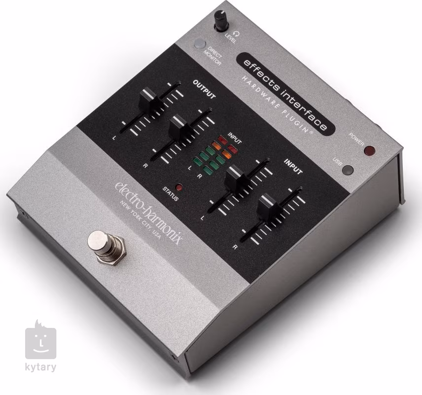 Az Effects Interface Hardware Plugin továbbá sztereó bemenetekkel és kimenetekkel rendelkezik, faderekkel a bemenetek és kimenetek jelszintjének beállításához, valamint fejhallgató-kimenettel hangerő-szabályzóval. A tápellátáshoz használja a mellékelt adaptert.