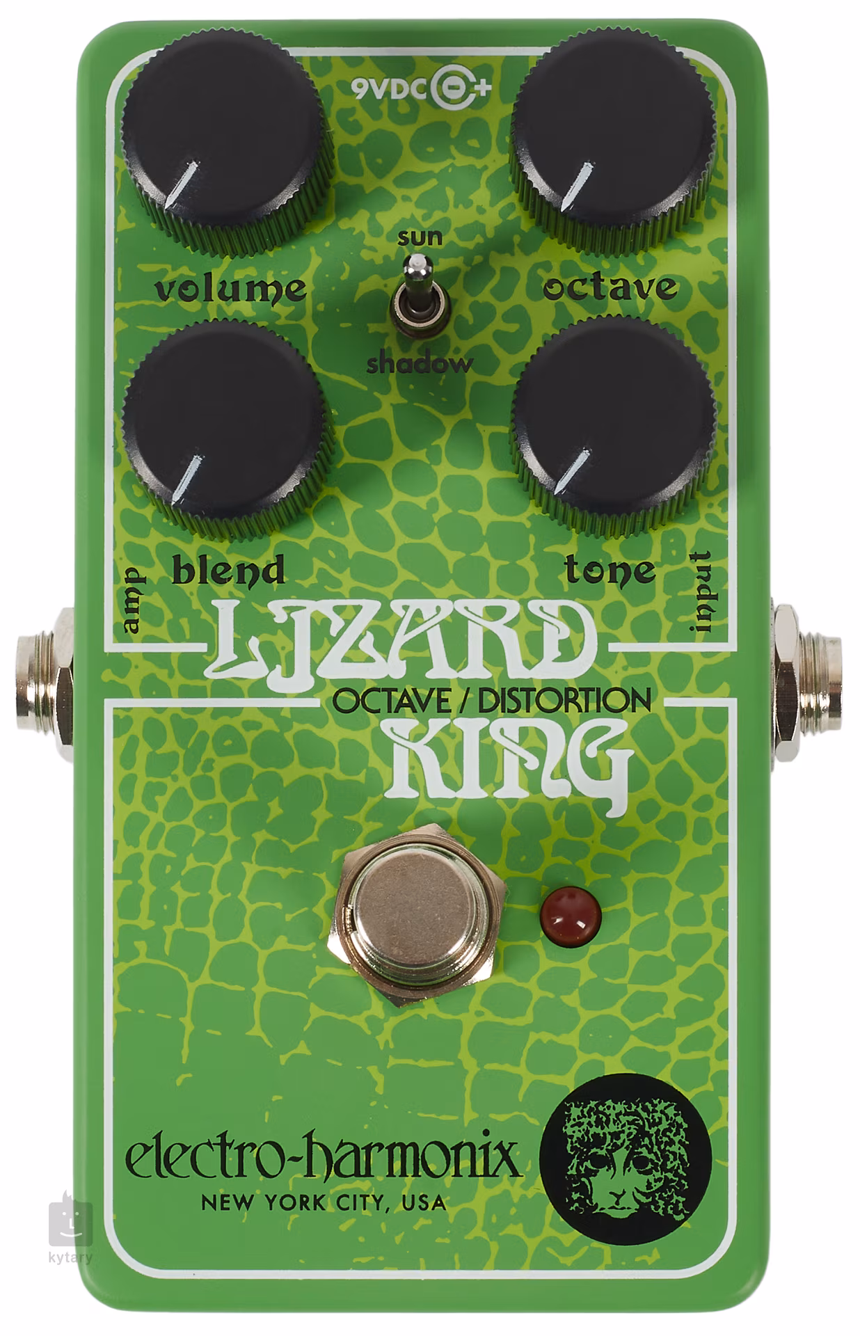 Az effekt SUN/SHADOW kapcsolóval is rendelkezik, hogy tovább bővítse a hangzás lehetőségeit. SUN üzemmódban a középtartományok hangsúlyosak, a tiszta hang pedig több basszust és magasságot kap. SHADOW módban a tiszta hang változatlan marad, a fuzz pedig feszesebb marad. A Lizard King True Bypass funkcióval rendelkezik, és készen áll arra, hogy bármilyen mixet uraljon.