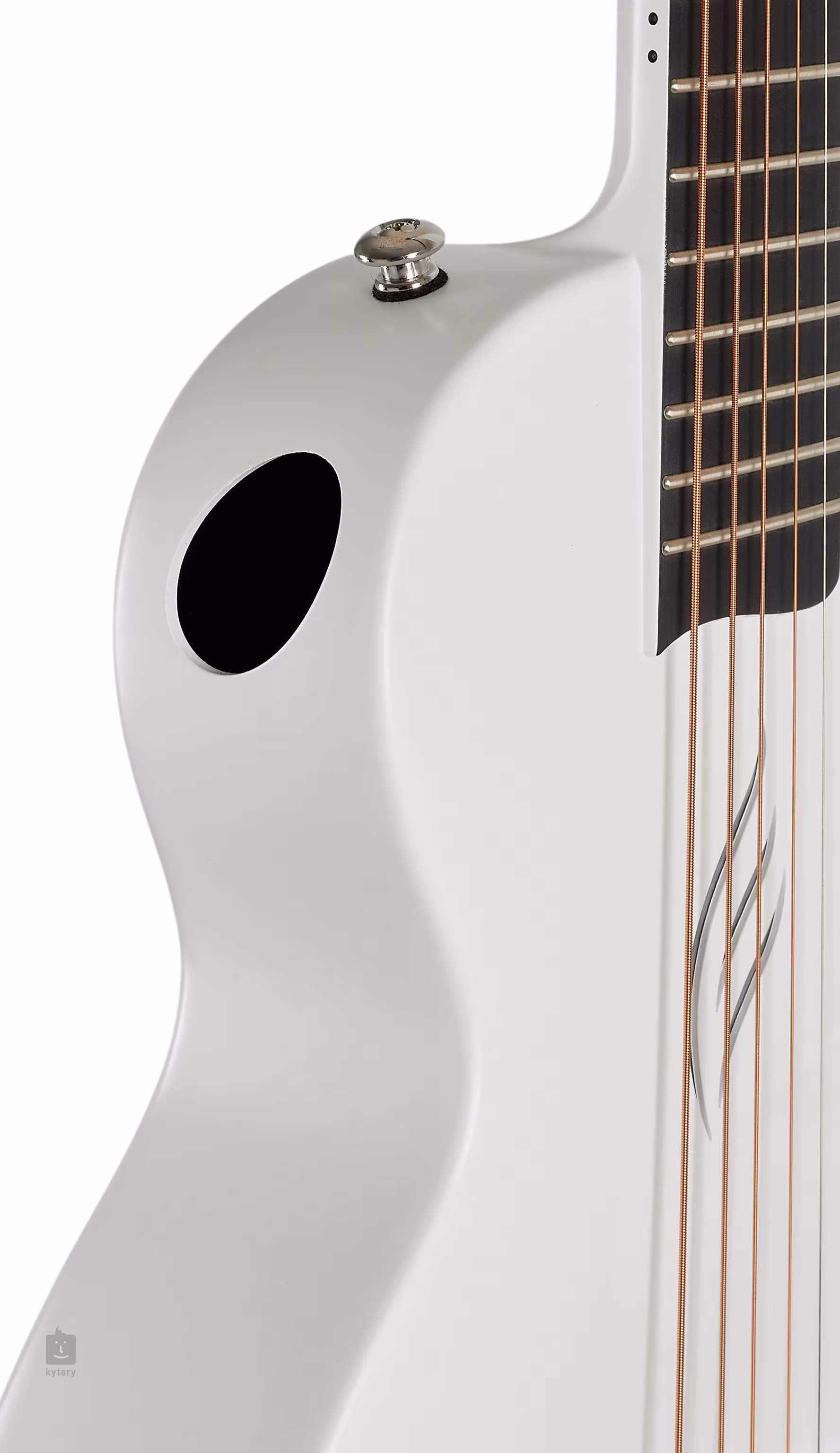 A Nova Go Mini White modell kompakt, félméretű testtel rendelkezik, ergonómikus alsó kivágással a magasabb hangok könnyebb elérése érdekében, valamint oldalsó rezonancia nyílással (side-port), amelynek köszönhetően még jobban élvezheti a gitározást. A fogólapok, beleértve a hozzáadott nullát is, lekerekítettek. Természetesen rövidebb a menzúra (579 mm). A húrok die-cast hangolókulcsokban vannak rögzítve, és a csontból készült nyeregfekvésen keresztül az integrált húrtartóban.