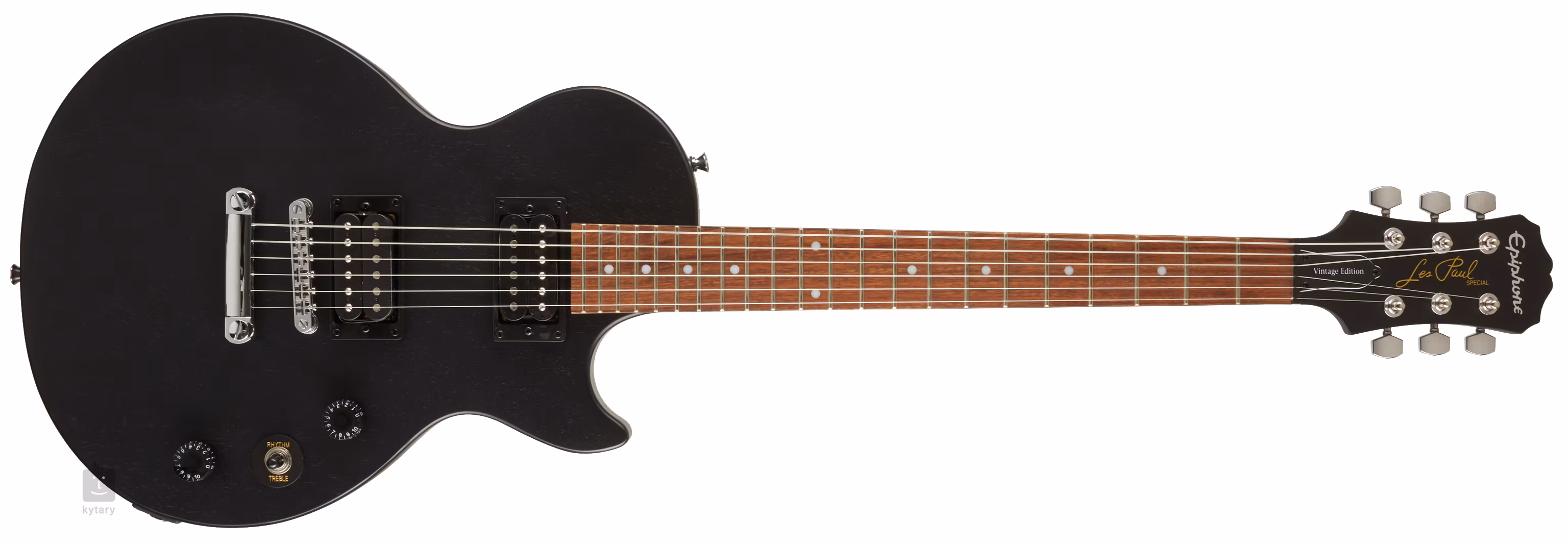 Az Epiphone Les Paul elektromos gitárjának vintage kiadása azt a hagyományos hangzást és megjelenést nyújtja, amely az 1950-es évek óta folyamatosan végigjárta a rock 'n' roll történetét. A puha felületű nyárfa test enyhe kopás benyomását kelti, ami egyfajta nosztalgikus bájt kölcsönöz a gitárnak. A 628 mm-es nyomtávú, kényelmes mahagóni D-profilú nyak 22 közepes méretű jumbo bundokkal és gyöngybetétes pozíciókkal ellátott rózsafa fogólappal rendelkezik. A gyors és megbízható hangolást az Epiphone prémium minőségű, tömített mechanikája és a teljesen állítható Locktone Tune-o-matic fogólap biztosítja. A fejlécen található arany "Les Paul" logó teszi teljessé az általános vintage megjelenést.