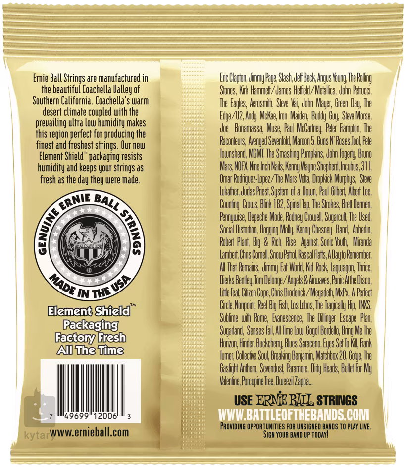 Az amerikai Ernie Ball cég már évtizedek óta a gitárhúrok vezető gyártói közé tartozik. Gyártásukhoz a legmodernebb technológiákat és kiváló minőségű anyagokat használnak. Így reagálnak a jelenlegi igényekre és elvárásokra, még a legigényesebb gitárosokéi is. Egyedülálló hangzásuk olyan személyiségek felvételein hallható, mint Paul McCartney, Keith Richards, Eric Clapton, Slash vagy Jimmy Page.