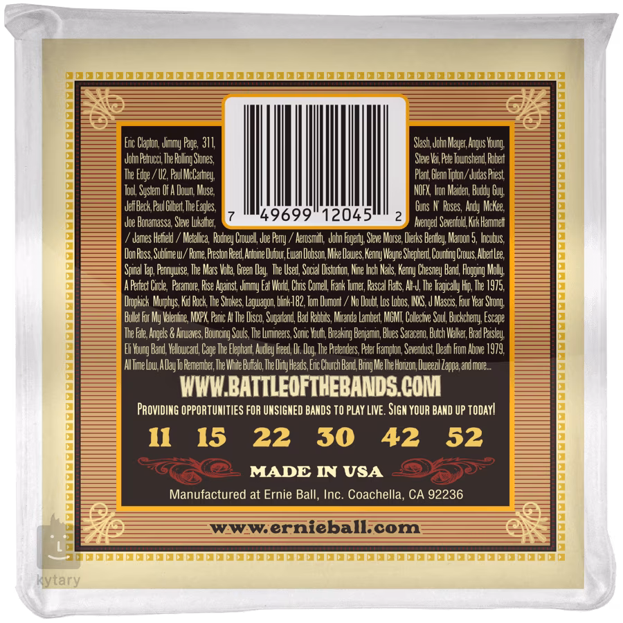 Az amerikai Ernie Ball cég már évtizedek óta a gitárhúrok vezető gyártói közé tartozik. Gyártásukhoz a legmodernebb technológiákat és kiváló minőségű anyagokat használnak. Így reagálnak a jelenlegi igényekre és elvárásokra, még a legigényesebb gitárosokéi is. Egyedülálló hangzásuk olyan személyiségek felvételein hallható, mint Paul McCartney, Keith Richards, Eric Clapton, Slash vagy Jimmy Page.