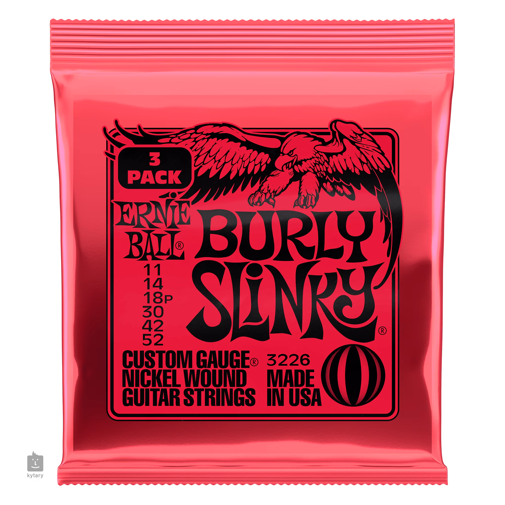 Három szett húrkészlet a Slinky Nickel Wound sorozatból.