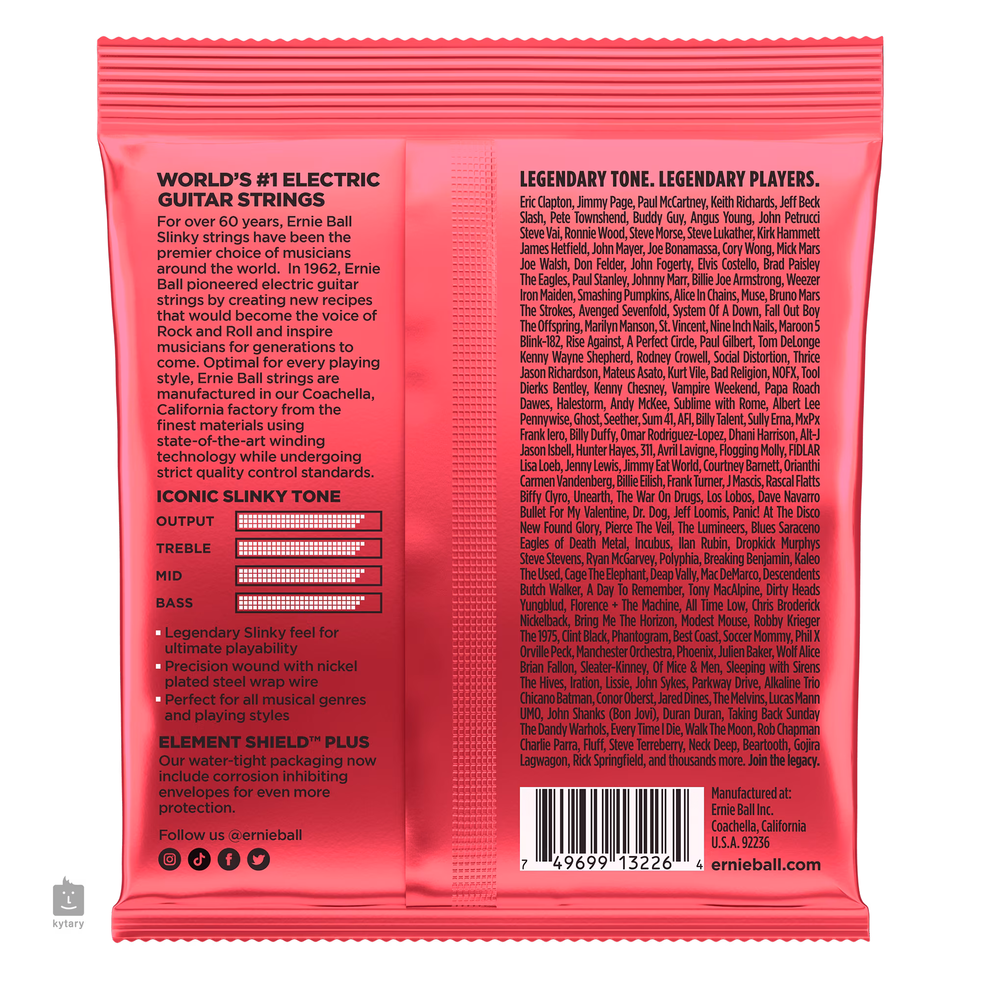Az Ernie Ball márkájú húrok az elektromos gitárhúrok között abszolút bestsellerek és arany standardnak számítanak. Kiváló minőségű anyagokból készülnek, precíz kivitelezésűek és hangzásuk sokoldalúsága révén szinte minden zenei műfajban alkalmazhatók. Alapjuk egy hatszögletű acélmag és hengeres nikkelbevonatú acéltekercs. Az eredmény egy frekvenciailag kiegyensúlyozott hang, amely rock, metal, pop és blues zenében is jól használható.