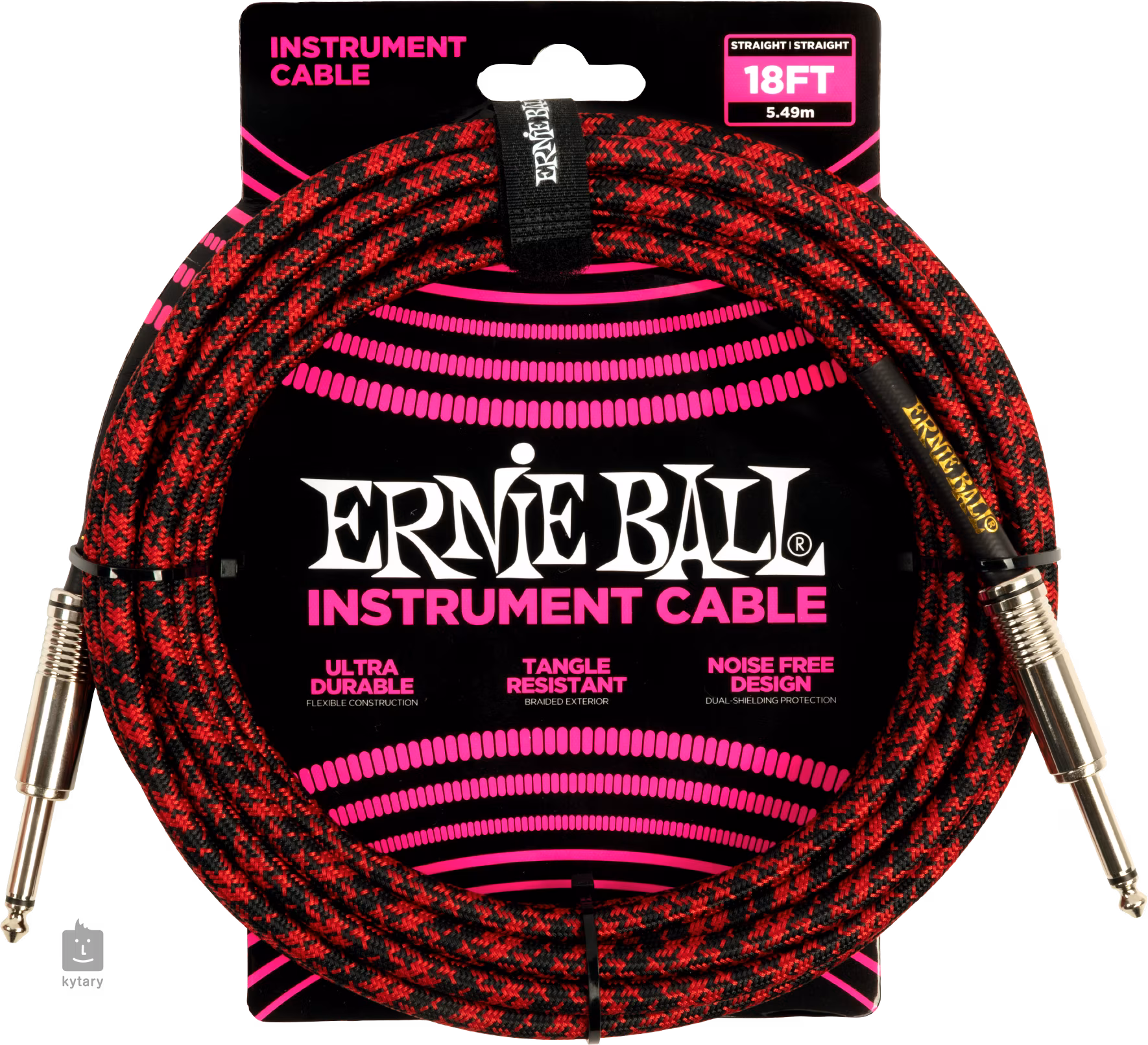 Ernie Ball Braided Instrument Cable 18' Red Black