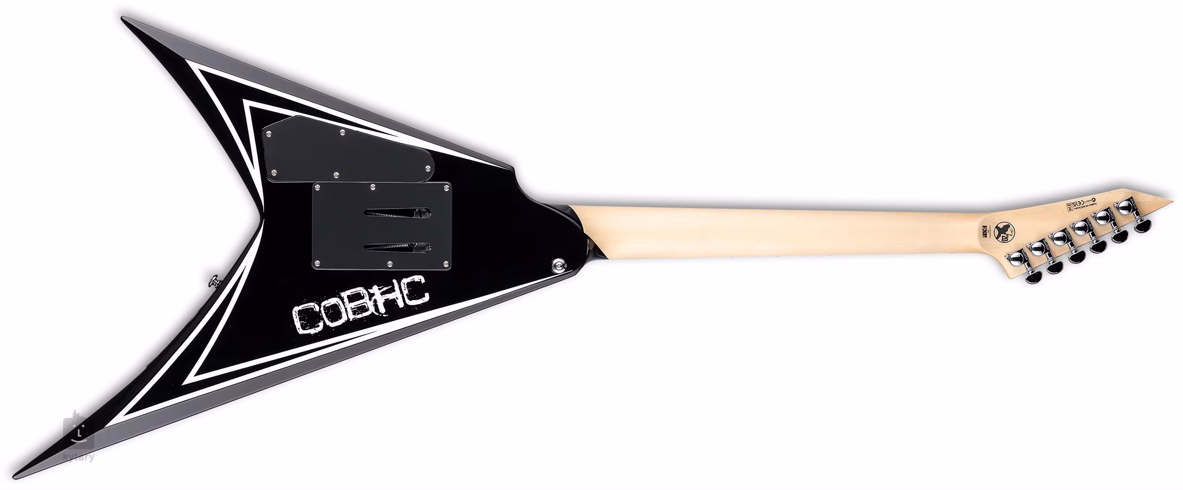 A passzív EMG HZ FH-2 humbucker kerámia mágnessel és magasabb kimeneti jellel biztosítja a gitárnak a tiszta, artikulált hi-gain hangzást és a tökéletes visszajelzést, amely szükséges a precíz metal riffek és az ultragyors szólók hibátlan előadásához. A húrok minőségi Grover hangolókulcsokkal és Floyd Rose 1000 Series tremolóval vannak rögzítve, amelynek segítségével lenyűgöző hanghatásokkal teheted változatosabbá a játékot. A nulladik fekvésű zárók biztosítják a maximális hangolási stabilitást még gyakori karhasználat esetén is. A stílusos kivitelezést az ikonikus COBHC logó a test hátoldalán és a krómozott hardver hangsúlyozza.