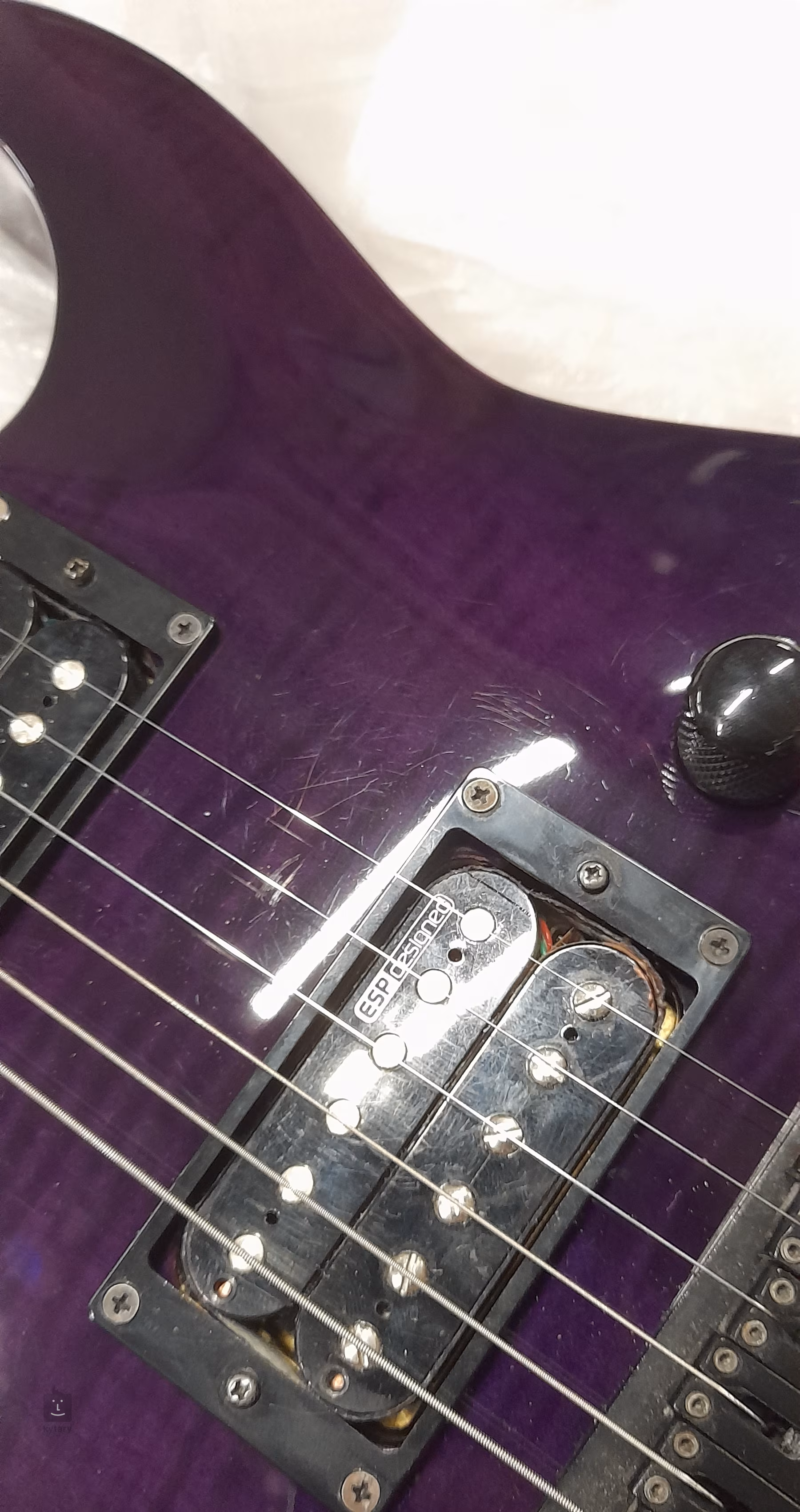 A H-200 FM STP elektromos gitár az LTD 200 sorozat kedvezőbb árú modelljei közé tartozik. Ez egy kiváló minőségű hangszer, amely nemcsak a kezdő gitárosokat fogja örömmel tölteni. A hangszer mahagóni testét látványos, fládrovaný juharfa borítás díszíti. A három darabból álló juharfa nyak a testhez van ragasztva. A jatoba fából készült fogólapot, amelyet brazil cseresznyének is neveznek, huszonnégy Extra Jumbo méretű fekvő osztja. Az elhelyezkedés megkönnyítésére eltolt pozíciójelölések találhatók rajta. Két gyári passzív humbucker biztosítja a gitár hangjának szükséges hajtóerejét. A Push/Pull hangszűrő funkciónak és a humbucker tekercsek szétválasztásának lehetőségének köszönhetően a hangzás palettája single-coil hangszedőkkel bővíthető. A húrok a gyári hangolóművekben és a testbe rögzített szilárd húrtartóban vannak rögzítve. A hangszer stílusos megjelenését a See Thru Purple színű festés és a fekete hardver hangsúlyozza. Az ESP cég 1984 óta foglalkozik elektromos gitárok gyártásával, és elégedett vásárlói között olyan nevek találhatók, mint Kirk Hammett, James Hetfield, Ronnie Wood vagy Max Cavalera. Ezeknek a hangszereknek a népszerűsége nyomán létrejött az LTD leányvállalat, amely a népszerű modelleket megfizethető változatban kínálja. Az ESP-LTD gitárok esetében is nagy hangsúlyt fektetnek a kivitelezés minőségére és a beépített alkatrészekre.