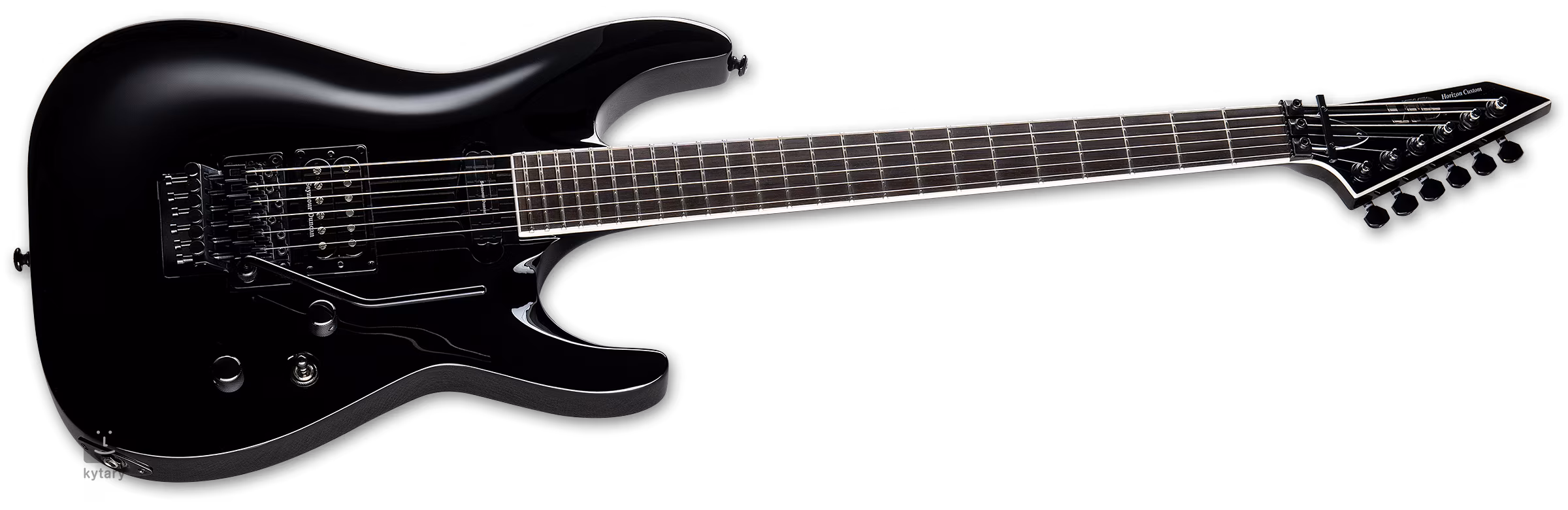 A HORIZON CTM '87 BLACK modell a 80-as évek végi és 90-es évek eleji ESP Horizon elektromos gitárok ívelt éger testét és keskeny, átformázott juhar nyakszerkezetét tartalmazza. Huszonnégy Extra Jumbo bund osztja meg az ébenfa makassar fogólap felületét.