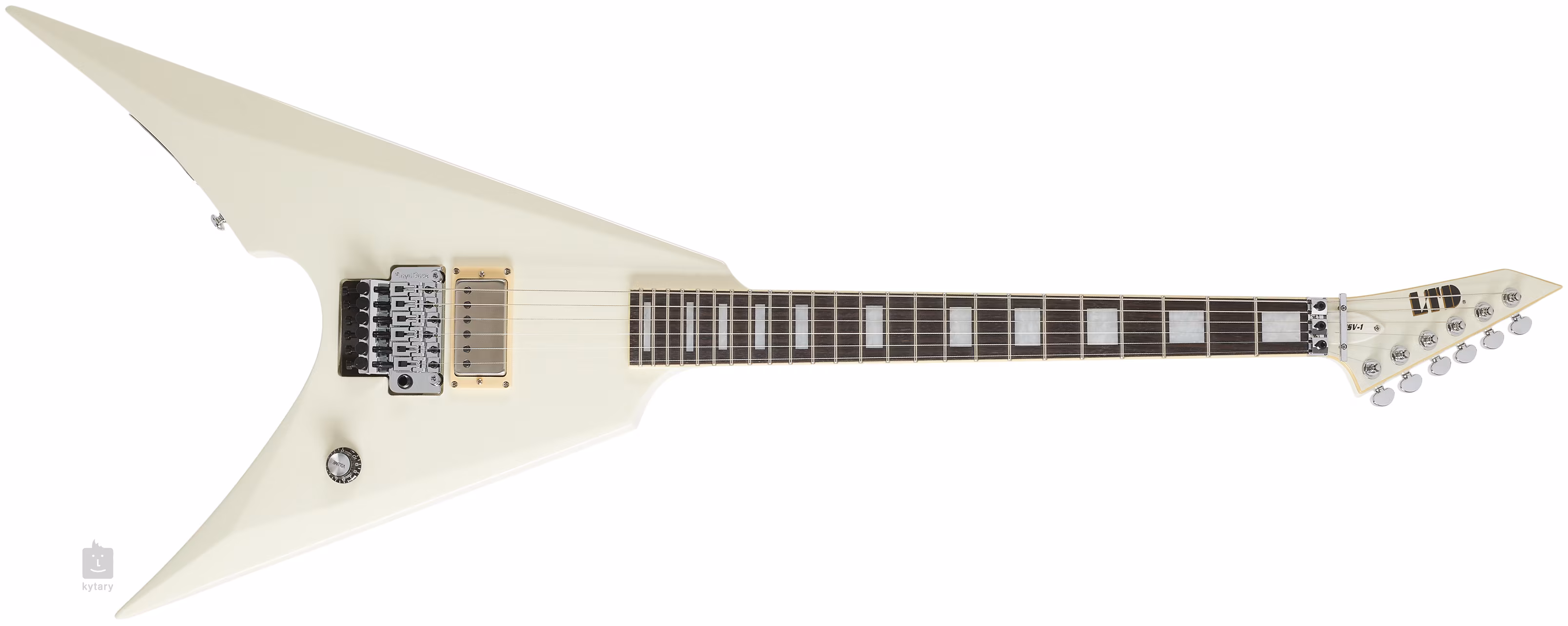 Elektromos gitár MSV-1 OLYMPIC WHITE egy aláírás modellje gitáros Mike Schleibaum amerikai metal zenekar Darkest Hour. A gitár testszerkezete mahagóni szárnyakból, juharfából készült tetőből és három darab mahagóniból készült átmenő nyakból áll. Huszonnégy Extra Jumbo rozsdamentes acél bund osztja meg az ébenfa makassar fogólapot.