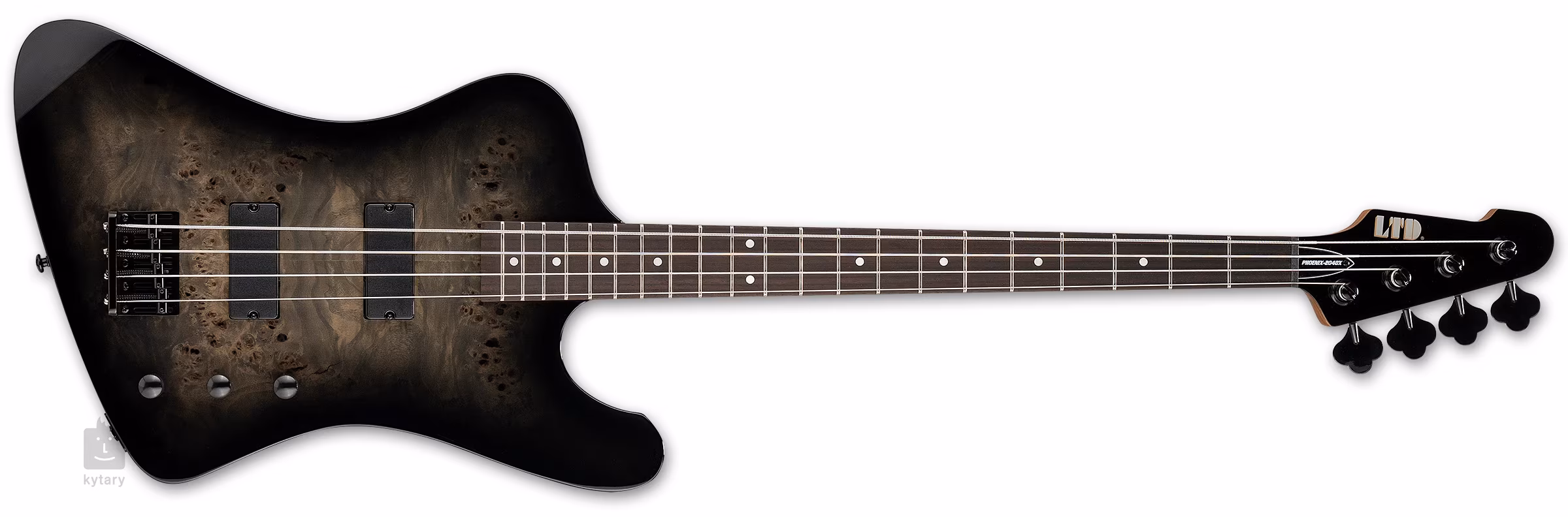 A PHX-204DX Black Burst elektromos basszusgitár pontosan olyan hangszer, amely többet nyújt, mint amit az árcédula sugall. Ez egy négyhúros basszusgitár, elegáns, eltolt formájú nyárfa testtel és lenyűgöző nyárfa gyökérfa (poplar burl) fedlappal. A kényelmes, csavarozható nyakhoz, amely pörkölt juharból készült, paliszander fogólap van ragasztva, amelyen huszonegy Extra Jumbo méretű fekvő van.