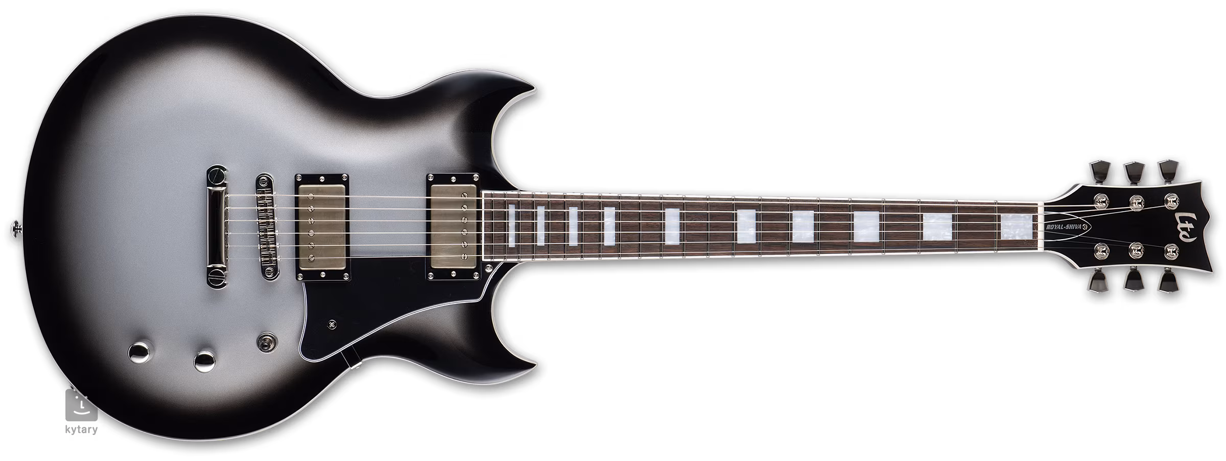 Az ESP LTD ROYAL SHIVA SILVER SUNBURST elektromos gitár eredeti dupla vágású kivitelben a Mastodon amerikai rockzenekar gitárosának, Bill Keliher-nek a signature modellje.