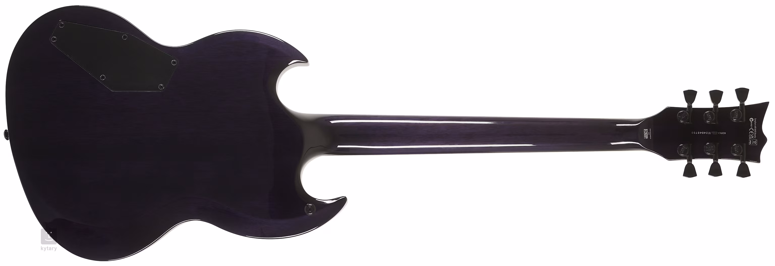 A pontos és stabil hangolást a húroknak a cég zárszerkezetében való rögzítése és a TonePros Locking TOM farokrész garantálja. A hangszer stílusos kialakítását a gyönyörű See Thru Purple Sunburst színösszeállítás és a fekete hardverek emelik ki.