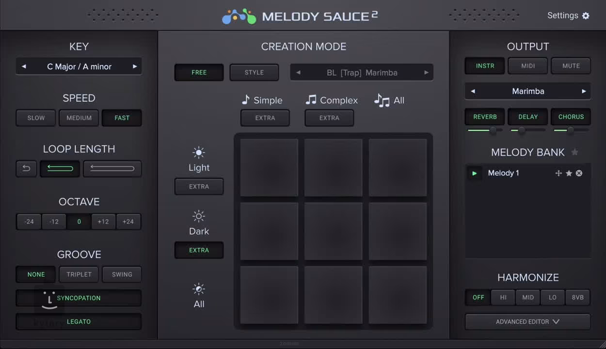 A Melody Sauce 2 by Eva Beat egy rendkívül intuitív plug-in második generációja, amely alkalmas zeneszerzésre és minták készítésére, akár stúdiómunkákhoz, akár élő előadáshoz. A VST eszköz közel 100 hangot, három integrált effektet, több mint 300 beállítást kínál a különböző zenei stílusokhoz és műfajokhoz, illetve milliónyi dallamot a végtelen inspirációhoz. A Melody Sauce 2 teljesen önállóan működik, anélkül, hogy MIDI-t kellene más hangszerekre irányítani. A bővítmény egy áttekinthető vezérlőpanelt kínál kilenc paddal.
