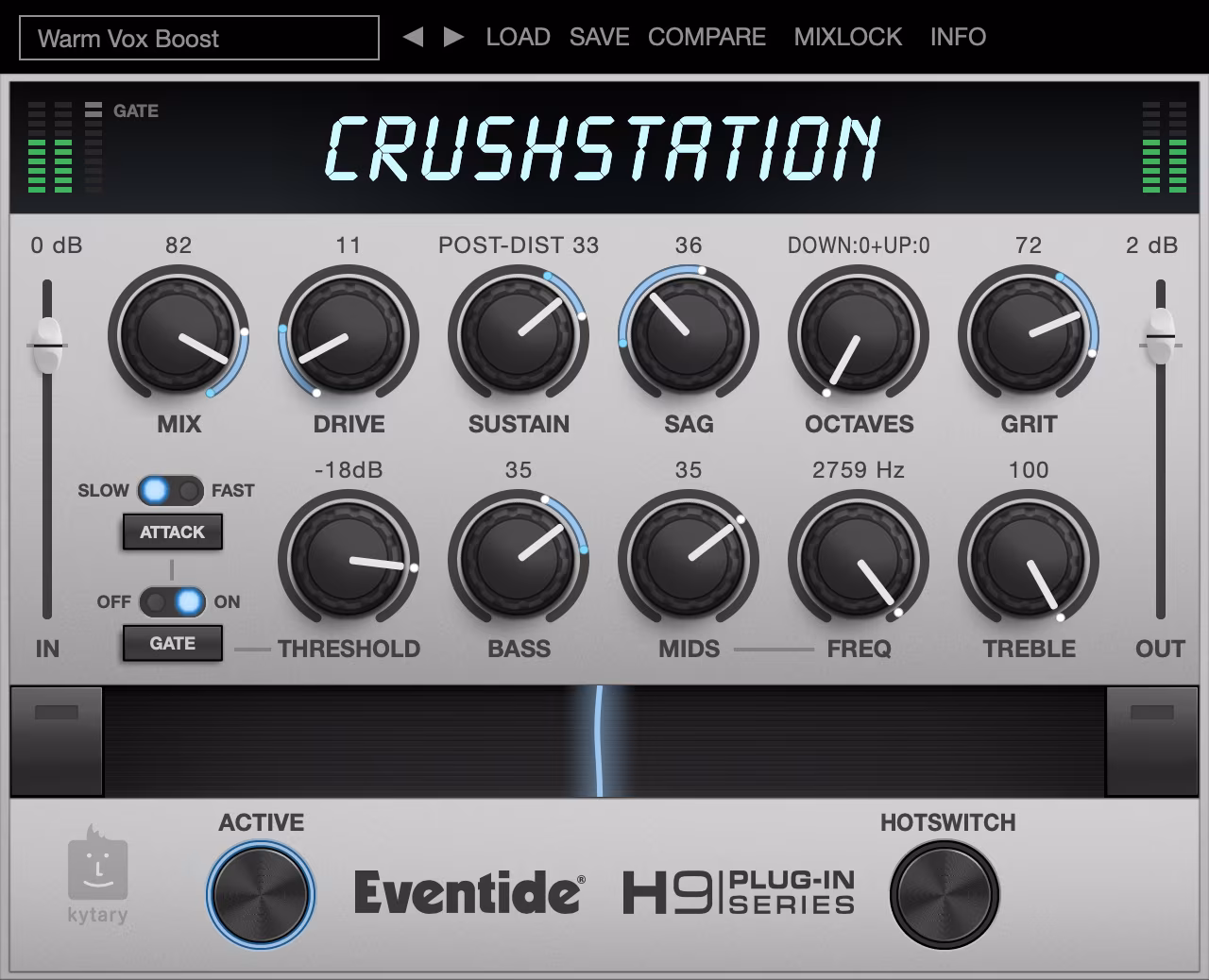 Az EventideCrushStation több mint egy torzítómotor - ez egy kreatív torzító- és telítési motor, amely karaktert, agressziót és vibrálást ad a zenédnek. Akár az énekhangot kell kiemelnie, akár ütős élt kell adnia az ütőhangszereknek, vagy a szintetizátorokat ipari vadállattá kell változtatnia, a CrushStation pontosan az az eszköz, amellyel a zeneszámát felejthetetlen hangzásélménnyé varázsolhatja.