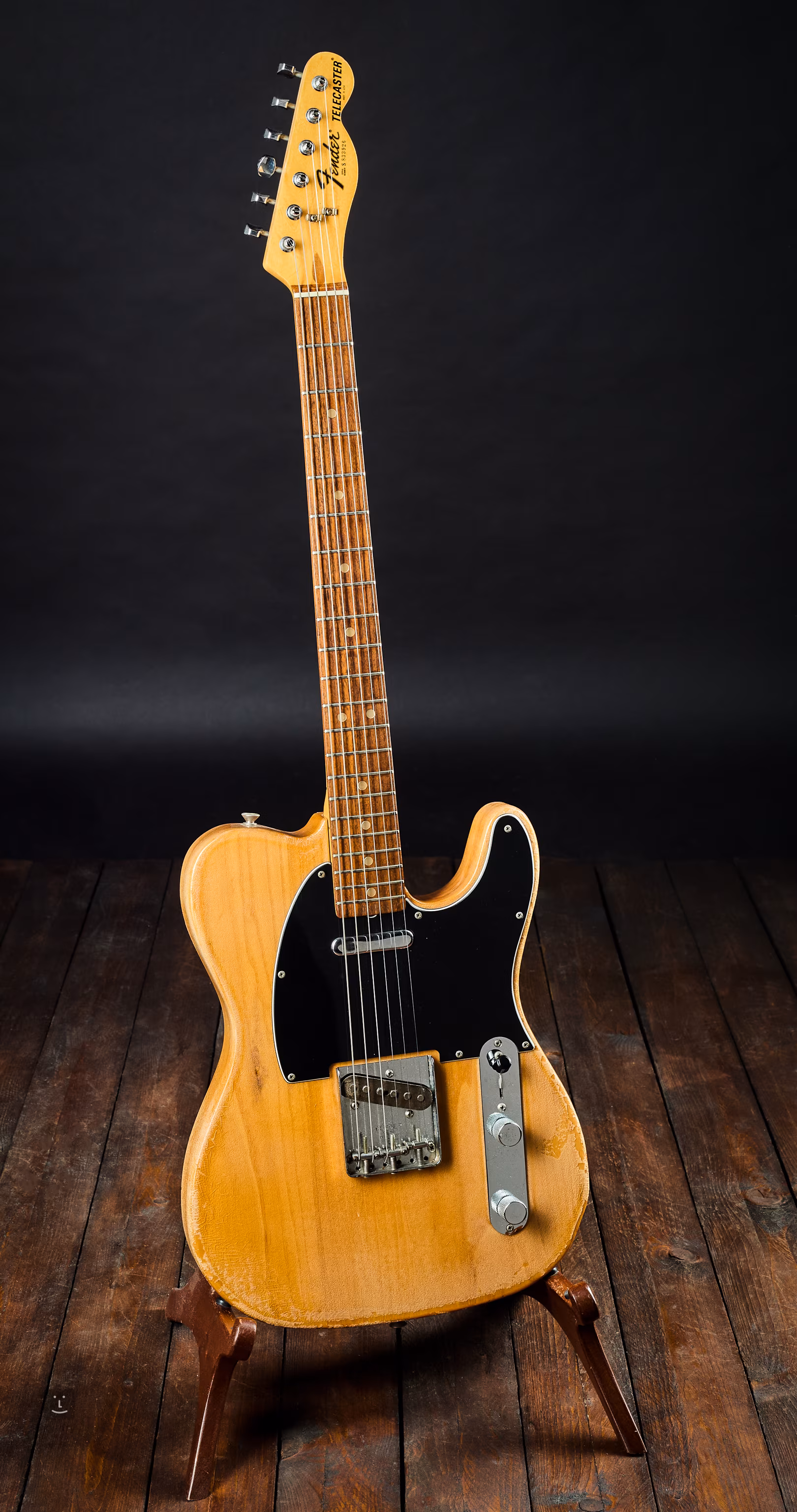 Hiteles 1979-es Telecaster, amely a kaliforniai Fullertonban, az eredeti Fender gyárban készült. A testfestés eltér az eredetitől, egyébként minden fontos dolog eredeti.