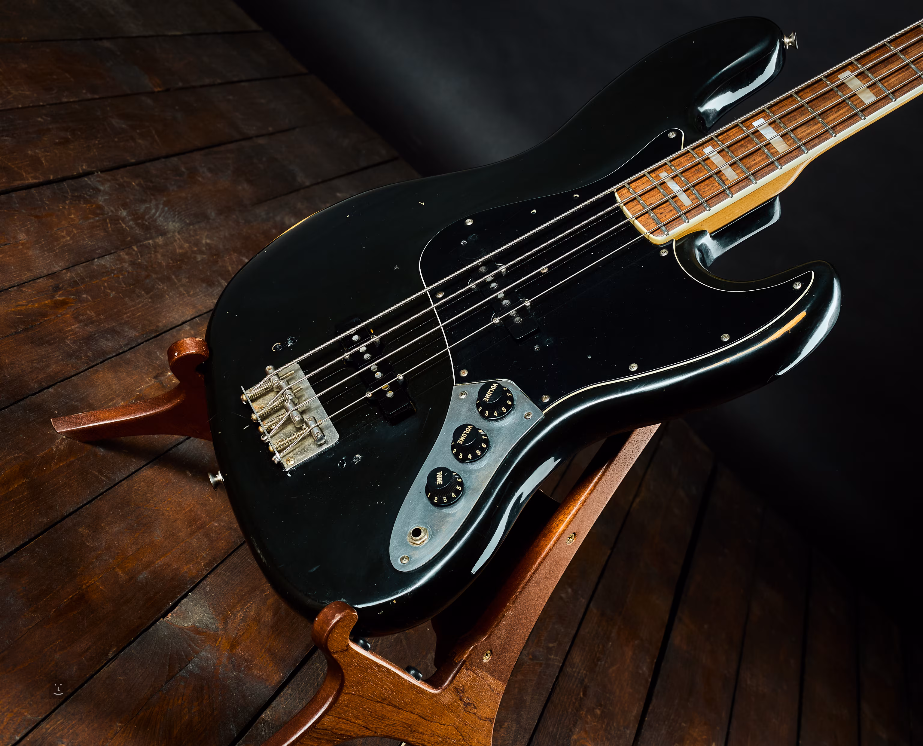 Ez egy teljesen tipikus Jazz Bass a 70-es évek végéről. A tölgyfa test fekete színű, a nyak juharfából készült, paliszander fogólappal, amely szegélyezett és orientációs téglalapokkal van ellátva. A vezérlés „stratocaster” gombokkal történik.