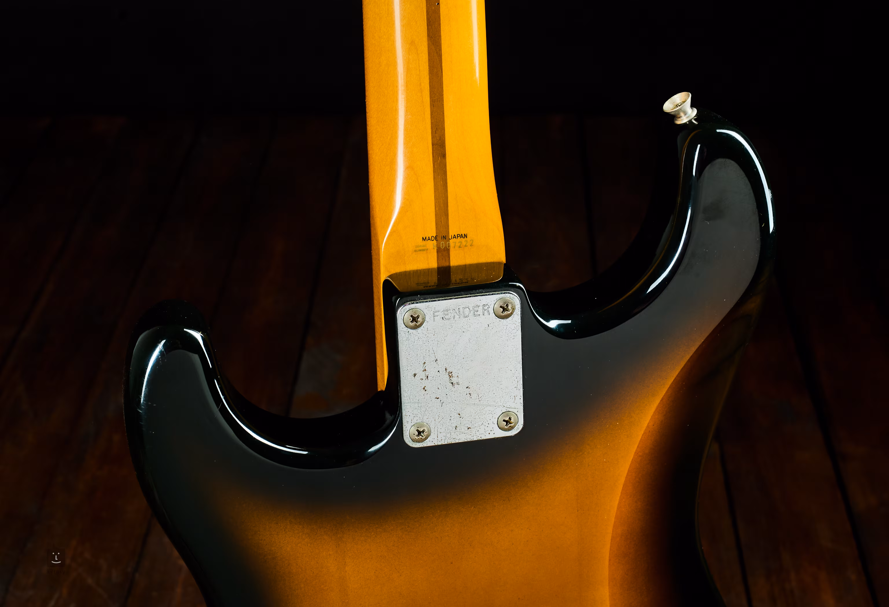 Japán Stratocaster 1991-ből, a Fender keresett korszakából, Made in Japan bélyegzővel a nyakon.