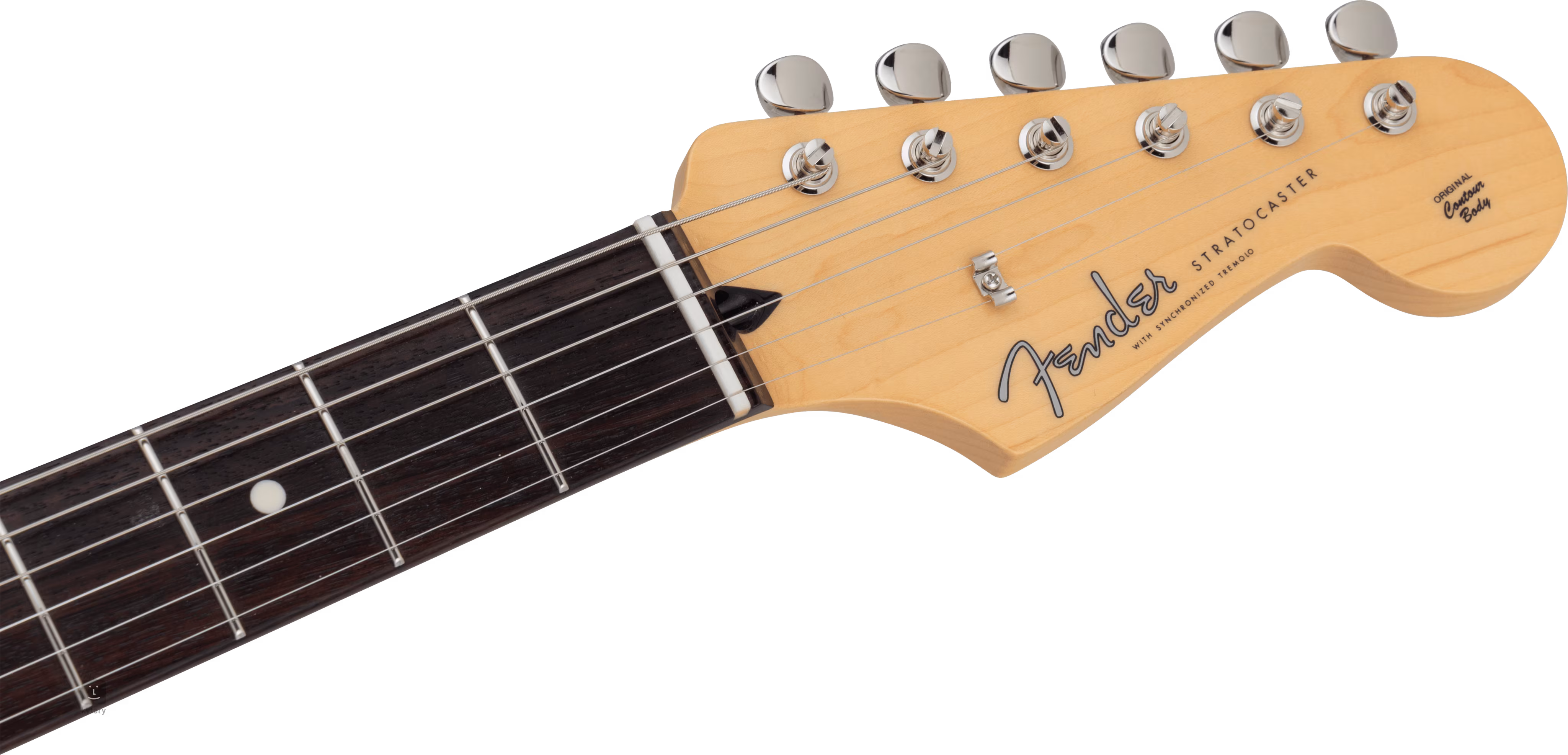 A 2024 Collection Made in Japan Hybrid II Stratocaster HSS Olympic Pearl gitár teste égerből készült. A huszonkét Narrow Tall bunddal ellátott rózsafa fogólapot egy kényelmes "Modern C" profillal ellátott juhar nyakra ragasztották. A fogólapon található fehér pozíciós pontok megkönnyítik a tájékozódást.