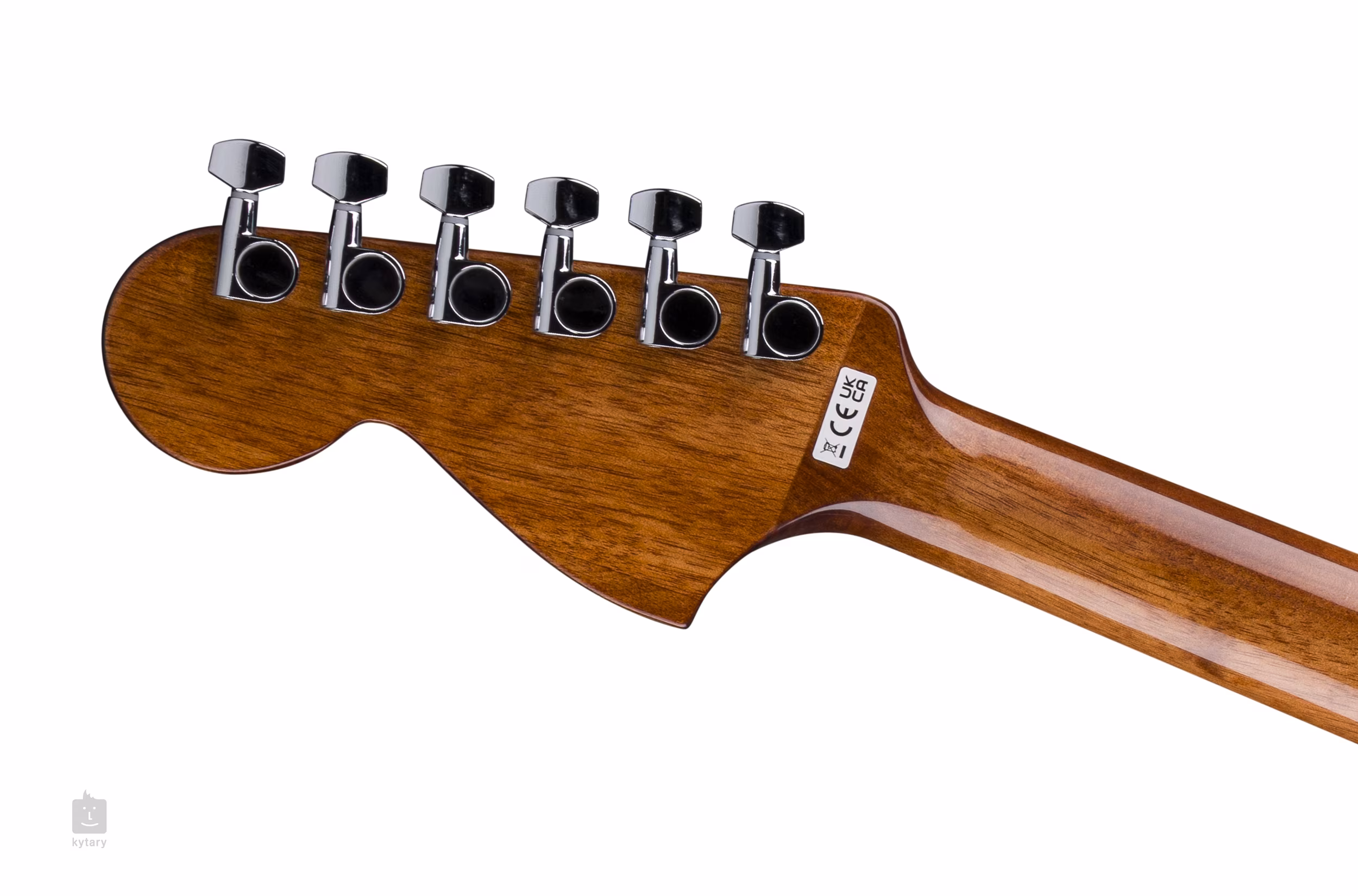 A húrokat a krómozott céges öntött mechanika és a diófa fogólap egy micarta kompozit nullbundon keresztül tartja. A stílust a Fender Mustang-design fejléc, a fekete testkötés és az egyrétegű fekete pickguard emeli ki.