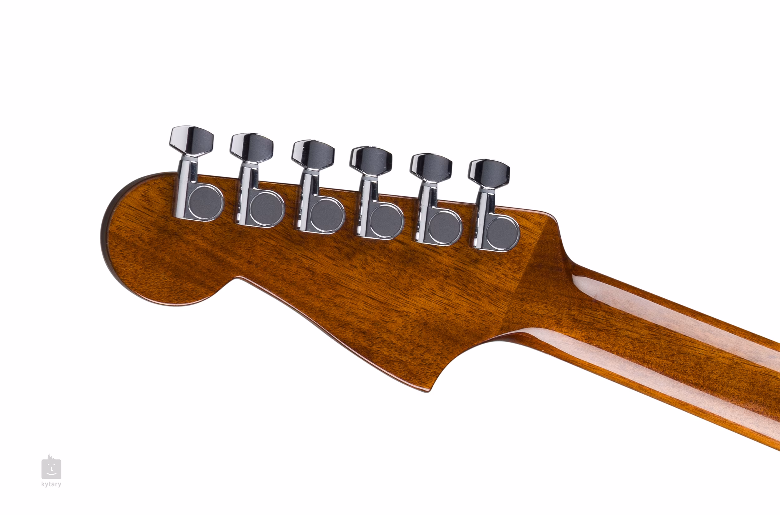 A húrokat a micarta kompozit nullbund fölé krómozott céges öntött mechanikában és diófa fogólapon szerelik. A stílusos kivitelezést a Jazzmaster dizájn fejléc és a peremkötés, valamint az egyrétegű elefántcsont utánzatú pickguard emeli ki.