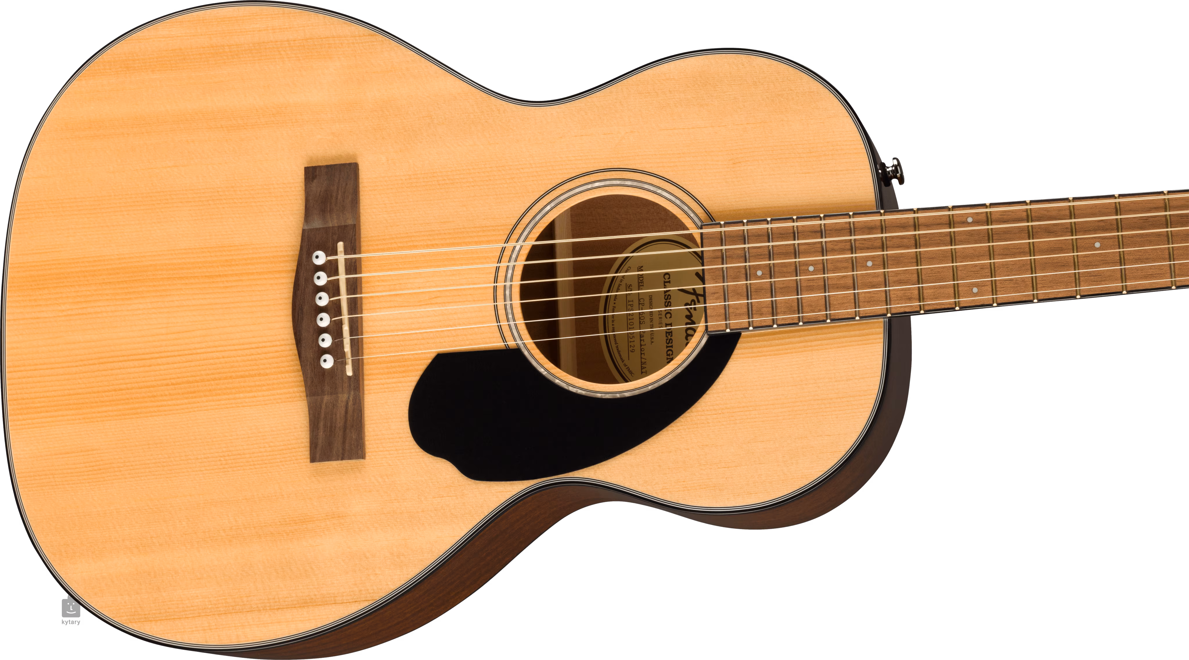 A Fender CP-60S NAT egy akusztikus gitár kompakt Parlor testtel, a legkisebb testkialakítással, amit a Fender kínál, és amely ideális az ujjpickinghez. A gitár előlapja tömör lucfenyőből, míg a hátlap és a lapok laminált mahagóniból készültek. A hangszer rezonanciáját a redukált X-típusú bordázás fokozza. A mahagóni nyakhoz egy diófa fogólap van ragasztva, kényelmesen lekerekített élekkel, húsz vintage méretű bunddal felszerelve. A fogólapon való tájékozódást gyöngyház utánzatú pozíciós pontok könnyítik meg.