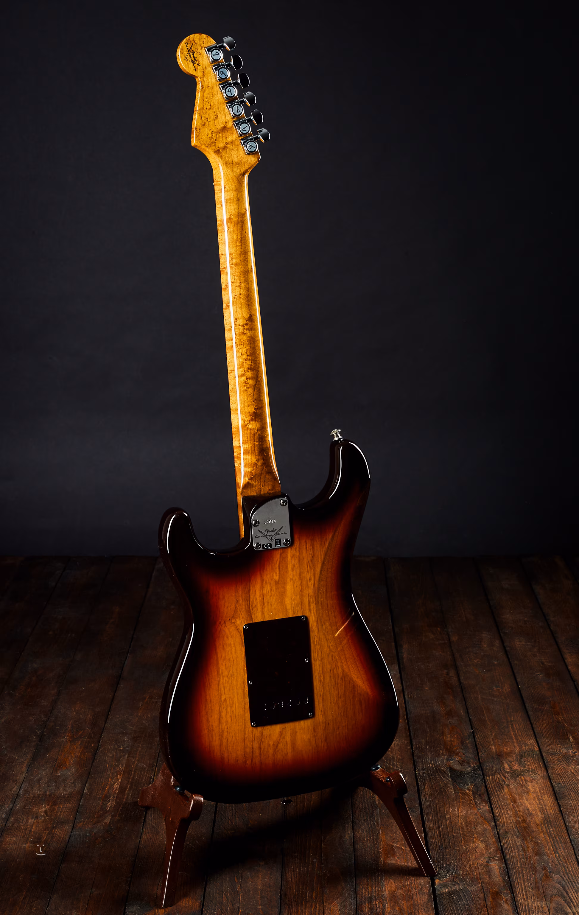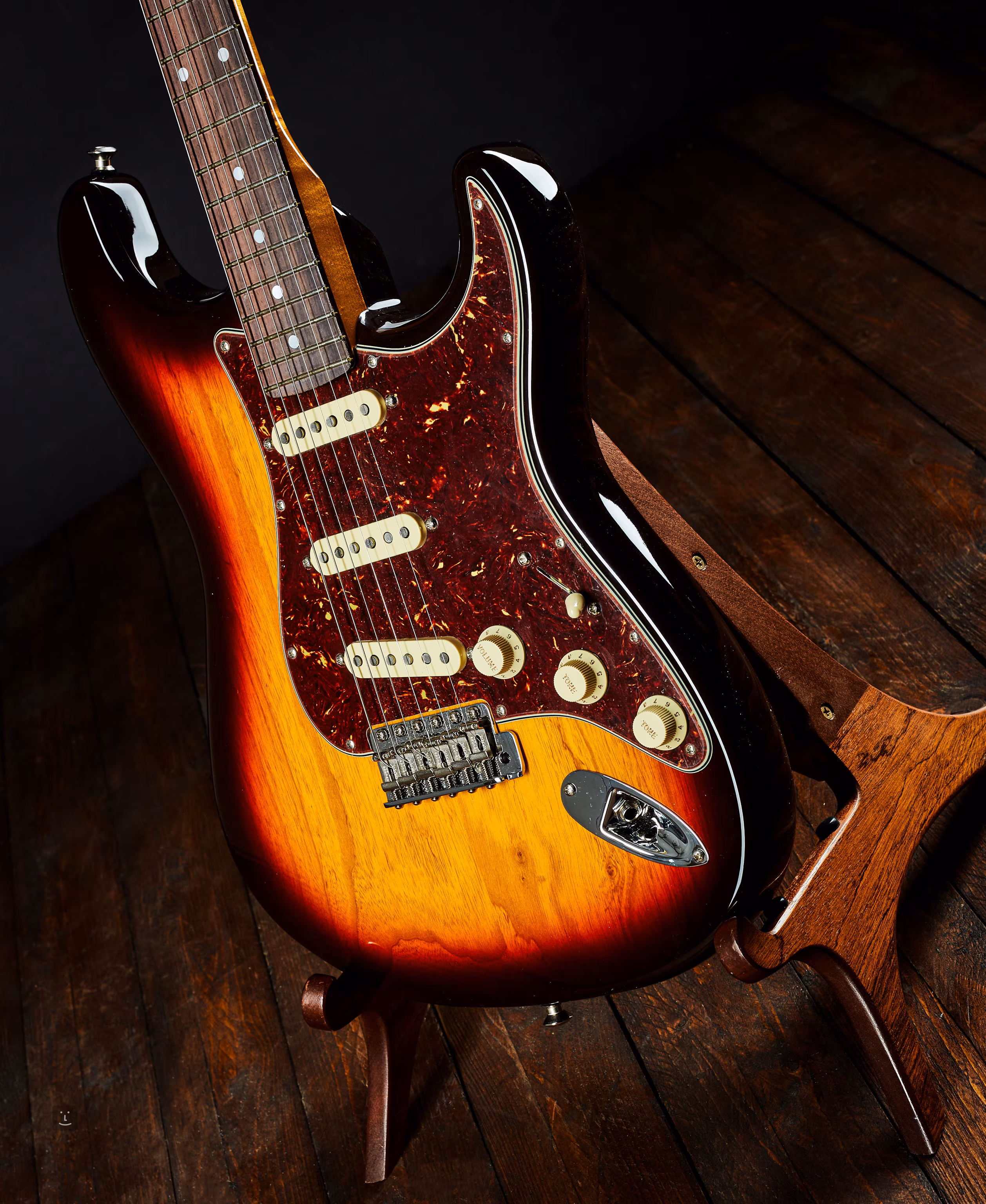 Az American Custom Stratocaster modern funkciókat kínál a klasszikus formához és megjelenéshez - ergonomikusan kialakított nyakláb; reteszelő mechanika; pörkölt pörkölt juhar nyak (enyhén oltott - 2A); hagyományos #2 vezetékezés Treble Bleed áramkörrel kiegészítve. Rózsafa fogólap és összetett sugár 9,5 - 12".