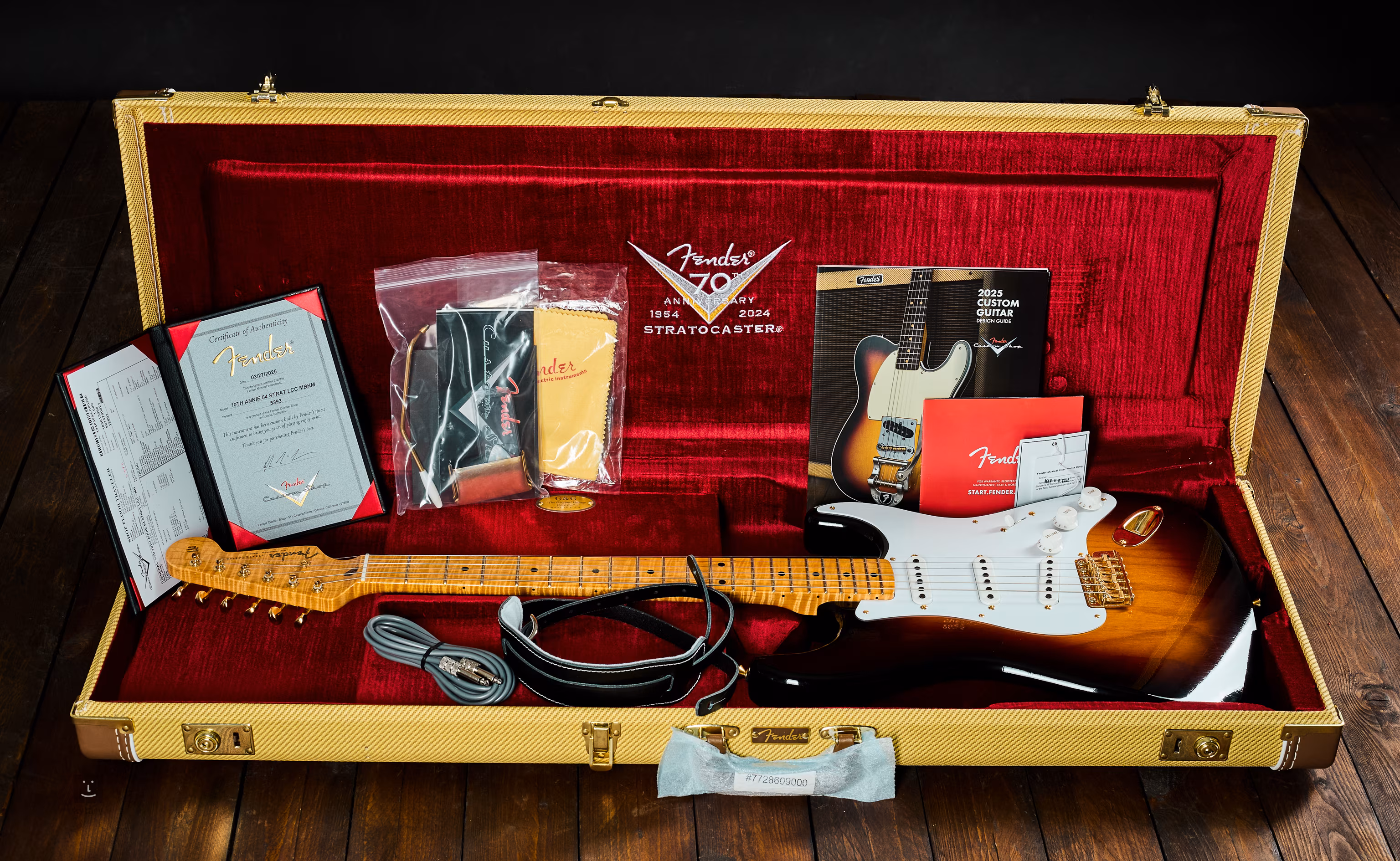 A Fender Stratocaster „platina” évfordulóját exkluzív Fender Custom Shop modellekkel is megünnepelték – ezek közé tartozik a Masterbuilt 70th Anniversary 54 Stratocaster Masterbuilt LCC.