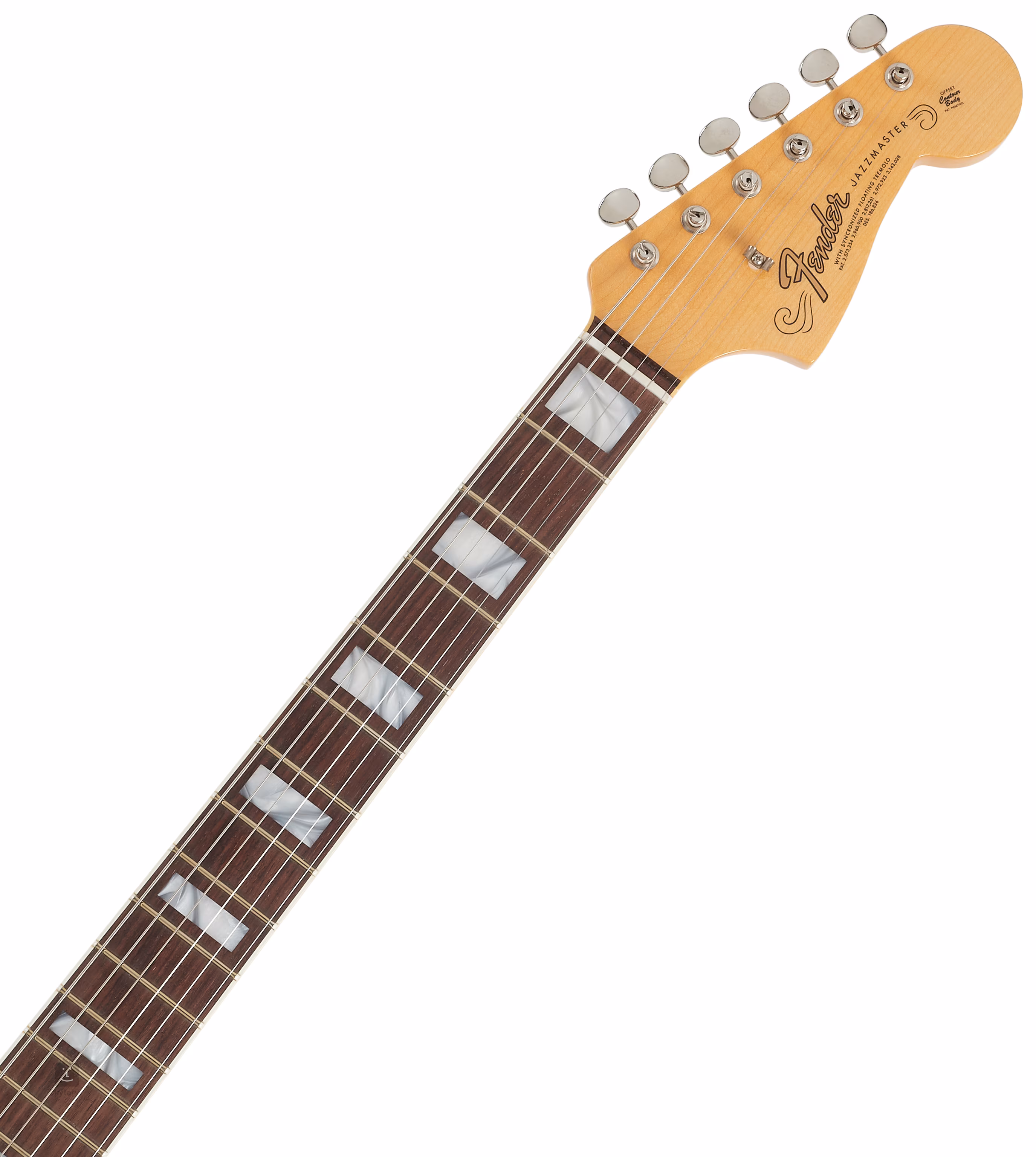 A két kézzel tekert Fender Custom Vintage Jazzmaster egytekercses hangszedő és a vintage hangszedő áramkörök/áramkörök kristálytiszta, kiegyensúlyozott hangzást biztosítanak a gitárnak. Állítsa be a karakterét a standard vezérlőkkel. A húrokat vintage stílusú hangológépek és RSD Jazzmaster híd és lebegő tremoló tartja. A stílusos kivitelezést a négyrétegű barna kagylós koptatóvédő emeli ki.