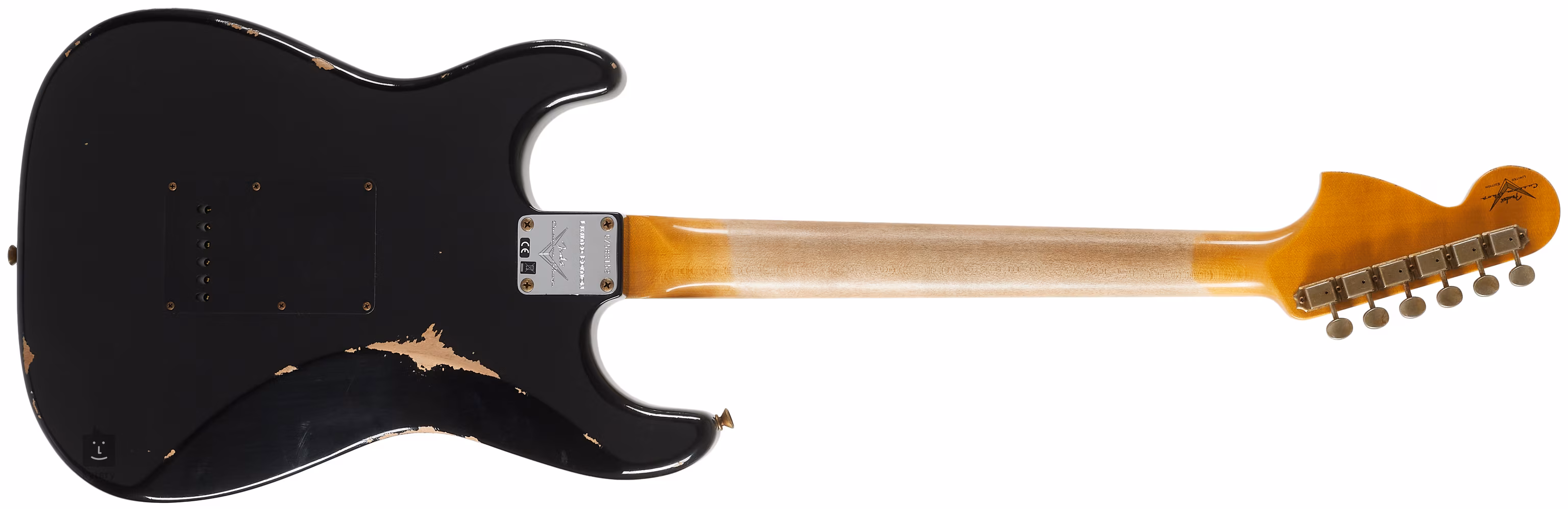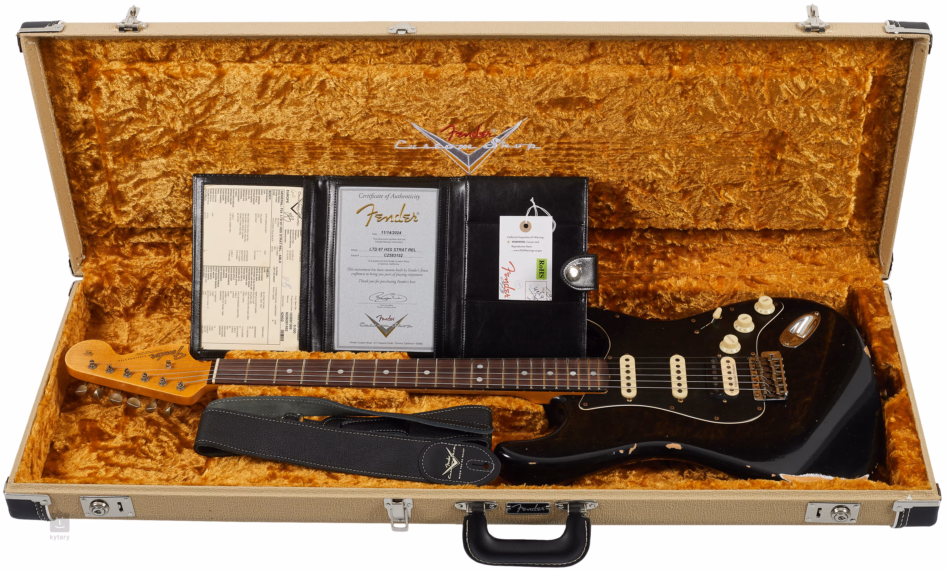 A 67 Strat HSS Relic Aged Black elektromos gitár a Fender Custom Shop limitált kiadású, csúcsminőségű hangszere.