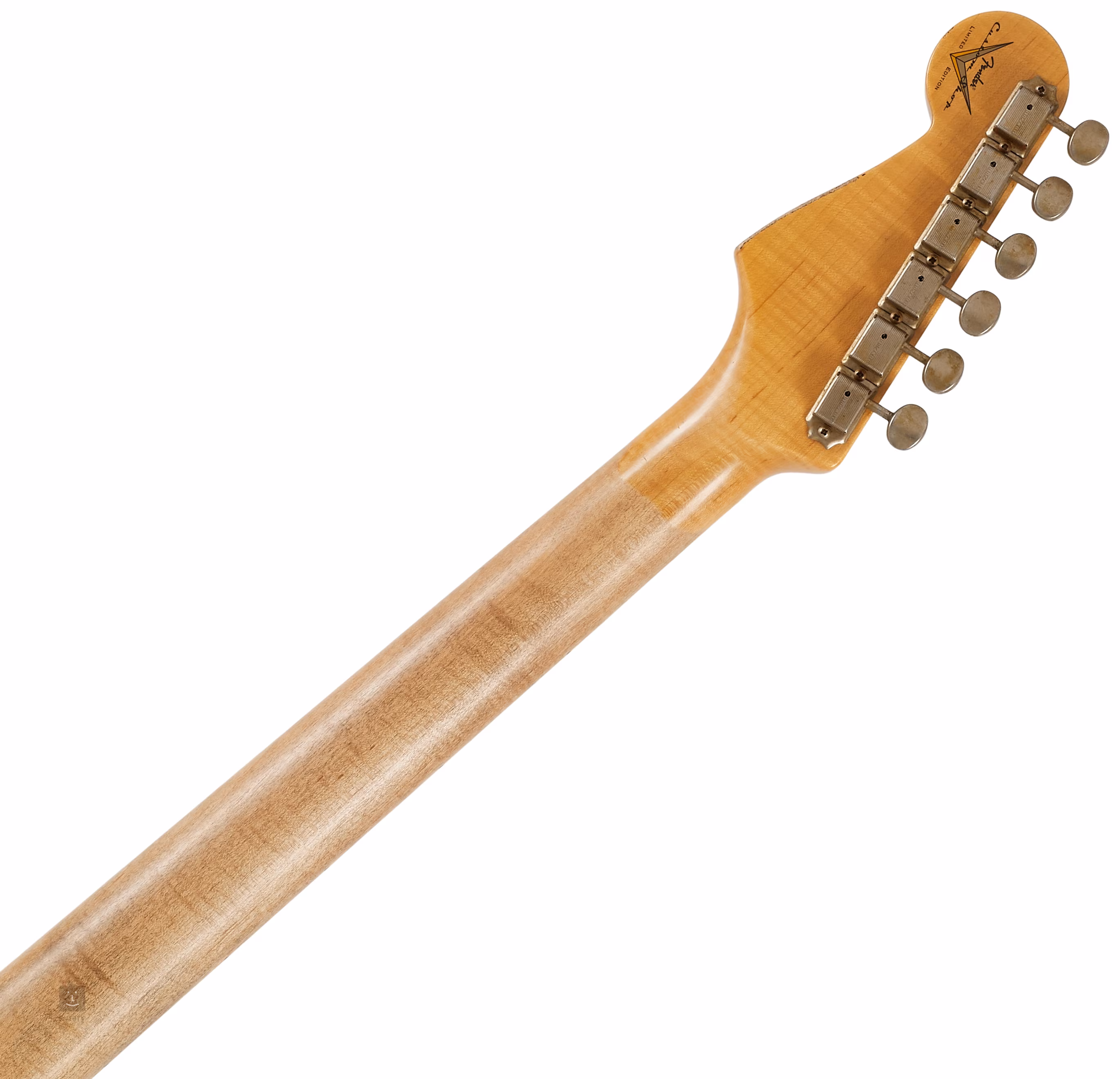 A húrok a gyári vintage stílusú hangolókulcsokban és a szinkronizált Custom Shop tremolóban vannak rögzítve. A stílusos kivitelezést a háromrétegű pergamen pickguard emeli ki.