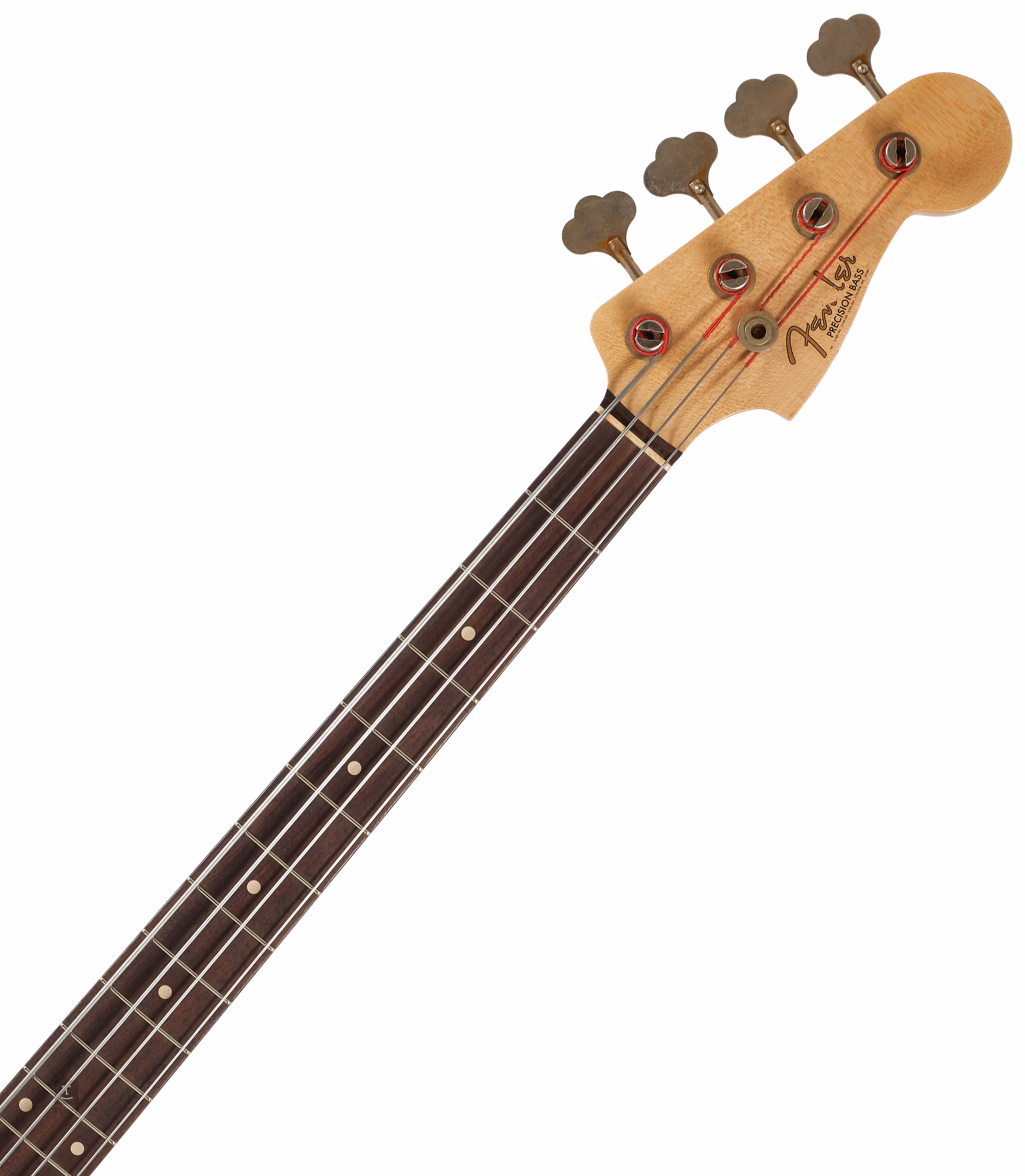 A Pino Palladino Signature Precision Bass Fiesta Red over Desert Sand könnyű éger testtel, "C" profilú juhar nyakkal és rózsafa fogólappal, egyedi tekercselésű vintage stílusú osztott egytekercses Precision Bass hangszedővel, teknőspáncél koptatóval és Thomastik-Infeld húrokkal rendelkezik. A Journeyman Relic "Fiesta Red over Desert Sand" fényezése a hamis patina elemeit kínálja, hogy megfeleljen az évtizedes közös, inkább hazai használatnak.