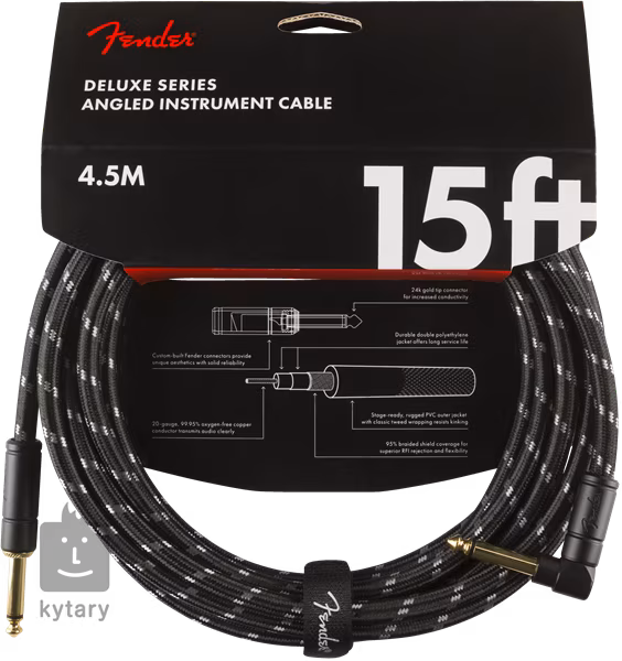 A Deluxe sorozatú hangszerkábel a Fender zászlóshajó terméke. A kiváló minőségű anyagok és a modern kialakítás kombinációja olyan kábelt eredményezett, amely tiszta és átlátható jelátvitelt, kiváló vezetőképességet és nem utolsósorban hosszú élettartamot garantál. A 24K aranyozott csatlakozók nagyszerű hangzást garantálnak, míg a tartós Tweed felület kiváló védelmet nyújt a sérülésekkel szemben. Egy tépőzáras kábelkötegelőt tartalmaz.