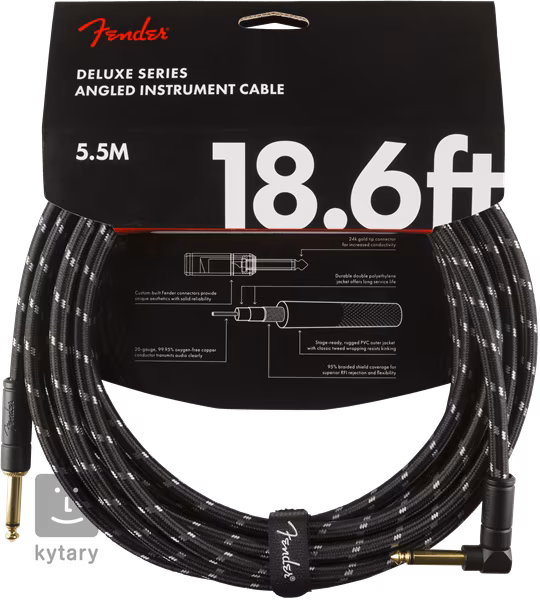 A Deluxe sorozatú hangszerkábel a Fender zászlóshajó terméke. A kiváló minőségű anyagok és a modern kialakítás kombinációja olyan kábelt hozott létre, amely tiszta és átlátható jelátvitellel, kiváló vezetőképességgel és nem utolsósorban hosszú élettartam garanciával rendelkezik. A 24K aranyozott csatlakozók nagyszerű hangzást garantálnak, míg a tartós Tweed felület kiváló védelmet nyújt a sérülésekkel szemben. Egy tépőzáras kábelkötegelőt tartalmaz.