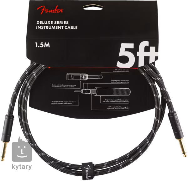 A Deluxe sorozatú hangszerkábel a Fender zászlóshajó terméke. A kiváló minőségű anyagok és a modern kialakítás kombinációja olyan kábelt eredményezett, amely tiszta és átlátható jelátvitelt, kiváló vezetőképességet és nem utolsósorban hosszú élettartamot garantál. A 24K aranyozott csatlakozók nagyszerű hangzást garantálnak, míg a tartós Tweed felület kiváló védelmet nyújt a sérülésekkel szemben. Egy tépőzáras kábelkötegelőt tartalmaz.