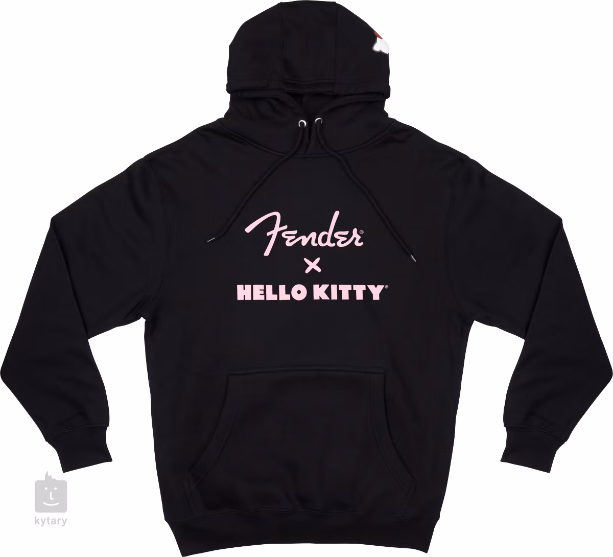 A Fender X Hello Kitty pamut/poliészter keverékből készült kapucnis pulóver ideális viselet szabadidős tevékenységekhez, vagy akár munkaruhaként is, ha a munkád és a konvenciók lehetővé teszik. A kapucnis pulóver különböző méretekben kapható.
