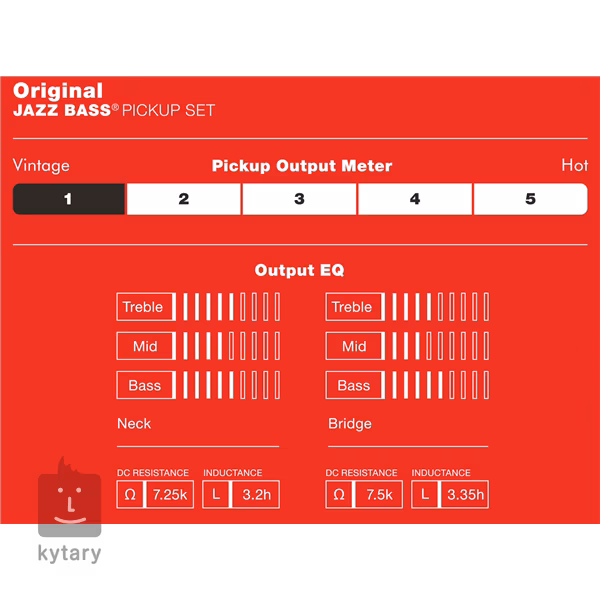 - Alnico II mágnes - Kiegyenlítés: nyak - 6/5/6, fejrész - 645 - DC ellenállás: nyak - 7,5k Ohm, híd - 7,25k Ohm