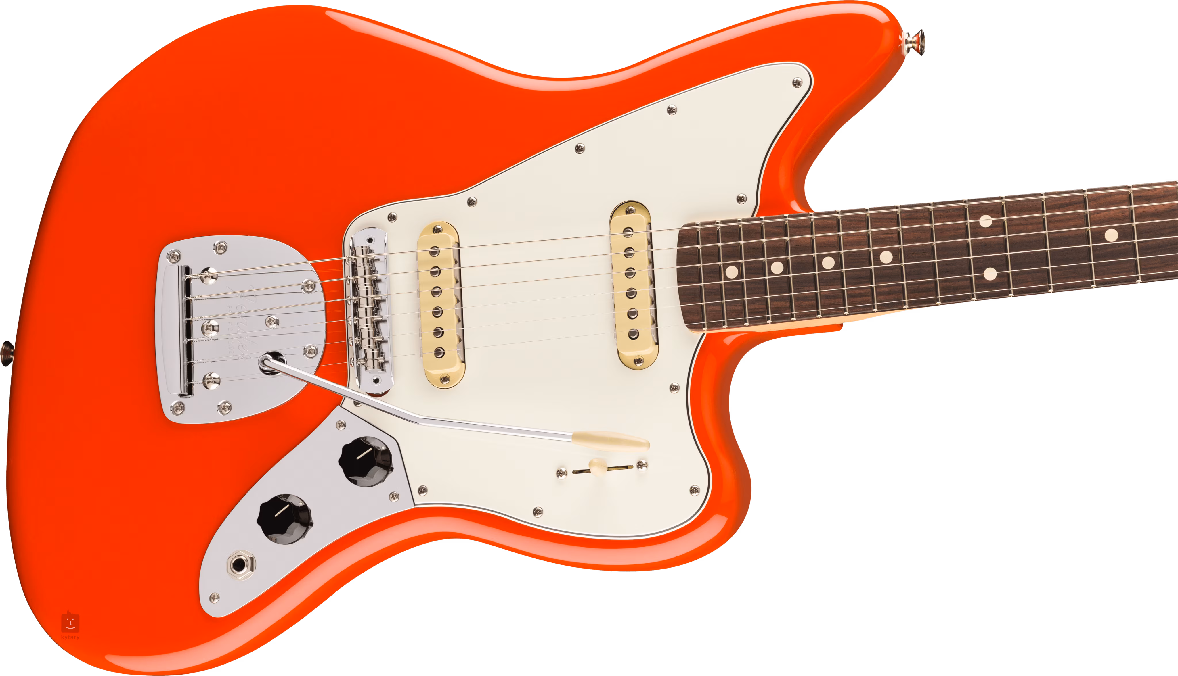 Két Player Series single-coil hangszedő Alnico 5 és Alnico 2 mágnessel a gitárnak egy modernebb Fender érzést és hangzást kölcsönöz, amelyet a zenei stílusok széles skáláján értékelni fogsz. A hangzás karaktere a standard vezérlőkkel manipulálható. A húrokat ClassicGear mechanikába szerelték 18:1 áttételű fogaskerékkel és vintage lebegő tremolós sárgaréz Mustang nyergekkel a fogólapon keresztül. A gitár stílusos megjelenését a fényes, háromrétegű koptató és a Coral Red fényezés emeli ki.