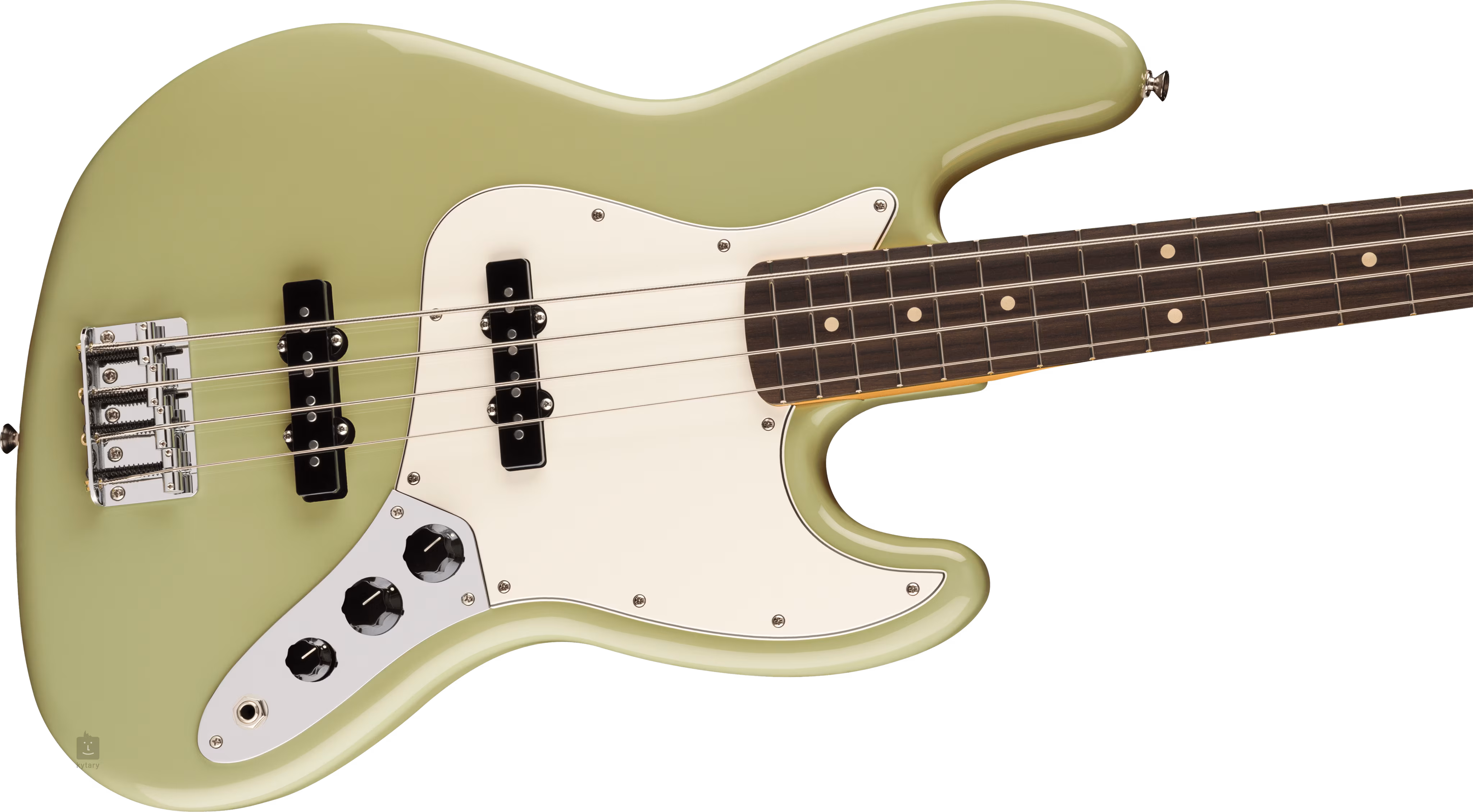A két Player Series Alnico 5 Jazz Bass single-coil hangszedő modernabb JB hangzását és érzetét számos zenei stílusban értékelni fogja. A hang kontúrjait a standard vezérlőkkel állíthatja be. A húrok a cég vintage stílusú nyitott hangolóműveiben és a négy állítható nyereggel ellátott szilárd húrtartóban vannak rögzítve. A stílusos kivitelezést a háromrétegű Parchment pickguard hangsúlyozza.