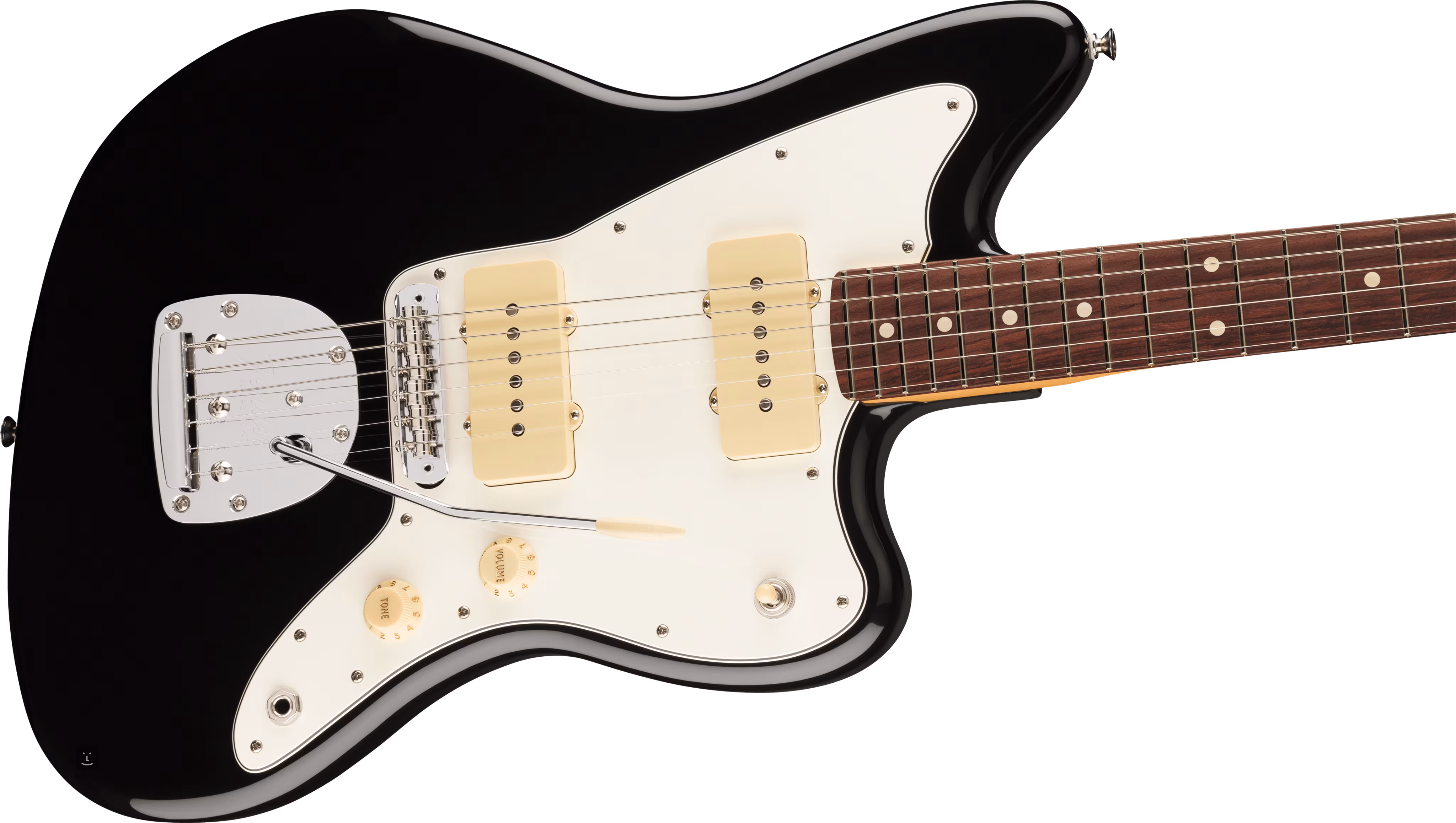 A Player II Jazzmaster RW BK gitár nevében a Jazzmaster szó egyértelműen az eredeti szándékot sugallja, de ez a jellegzetes offset testformával rendelkező hangszer nem sokat érintkezett a dzsesszel - az alternatív zenei szcéna (a surf-rocktól az indie-rockig) zenészeinek körében vált népszerűvé. A gitár égerfa testét fényes poliészterlakk borítja. A "Modern C" profillal és szatén fényezéssel ellátott juharfa nyak egy lekerekített szélű, huszonkét Medium Jumbo bunddal ellátott paliszander fogólapra van ragasztva.