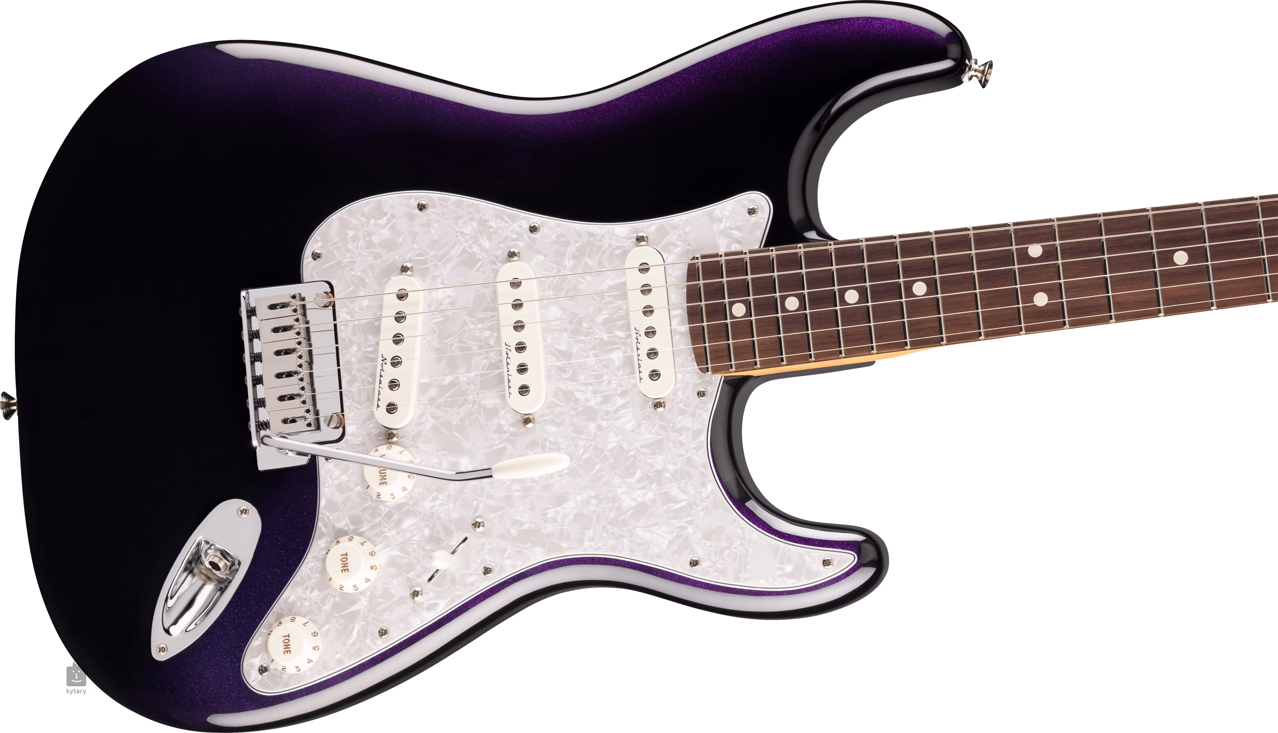 A váltás a hangszedőkkel együtt érkezik. A Player II Noiseless Strat single-coilok triója gyönyörű tiszta Fender Stratocaster hangzást ad a gitárnak zavaró zajok nélkül. A második hangszínszabályzó meghúzása (push/pull funkció) a nyaki hangszedőt még olyan pozíciókban is aktiválja, amelyek általában nem számára vannak fenntartva - ezzel a standard ötállású kapcsoló menüje kibővül mindhárom hangszedő vagy a nyak és a híd kombinációival. És ez még nem minden. A gitár egy treble-bleed áramkörrel van felszerelve, amely átengedi a magasakat, és biztosítja, hogy a basszusfrekvenciák ne hangsúlyozódjanak ki, amikor a Volume-potenciométert lefelé fordítjuk.