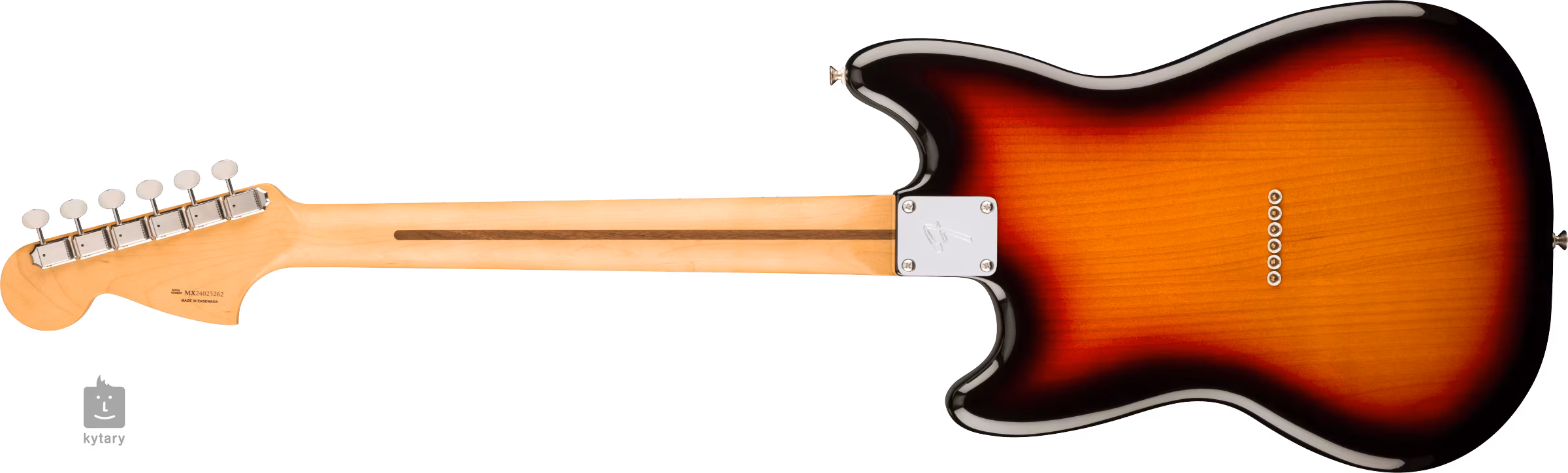 A Fender Player II sorozat kedvezőbb árú elektromos gitárokat kínál a Stratocaster, Telecaster, Jazzmaster, Jaguar vagy Mustang időtálló kialakításokban. Így egy Fender logóval ellátott hangszer birtoklása nem kiváltság, hanem szinte szükségszerűség. A jellegzetes, eltolt testtel rendelkező Fender Mustang az 1960-as évek elején jelent meg, mint alapmodell az elektromos gitárok között, és talán éppen ezért néhány évtizeddel később az egész alternatív szcéna, élén Kurt Cobainnel és John Fruscianttal, megszerette. A Player II Mustang MN 3TS gitár olajfa testét fényes poliészter lakk borítja. A „Modern C” profilú, szatén bevonatú juharfából készült nyak és a lekerekített élekkel rendelkező juharfából készült fogólap kiváló játék tulajdonságokat kínál. A rövidebb menzúra (610 mm) miatt a Mustang azoknak a zenészeknek is megfelel, akiknek problémáik vannak a standard menzúrájú gitárokkal (Strat, Tele, Jazzmaster). Két Player Series single-coil hangszedő Alnico 5 mágnesekkel biztosítja a gitárnak a modern Fender érzést és hangzást, amelyet sokféle zenei stílusban értékelni fogsz. A hangzás karakterét a hangerő-szabályzóval, a hangszínszabályzóval és a háromállású hangszedő-kapcsolóval lehet beállítani. A stabil hangolást a ClassicGear mechanikák biztosítják 18:1 áttételi aránnyal és a hat acél nyereggel ellátott, testbe rögzített szilárd húrtartóval. A gitár stílusos megjelenését a fekete háromrétegű pickguard és a 3-Tone Sunburst kivitel hangsúlyozza.