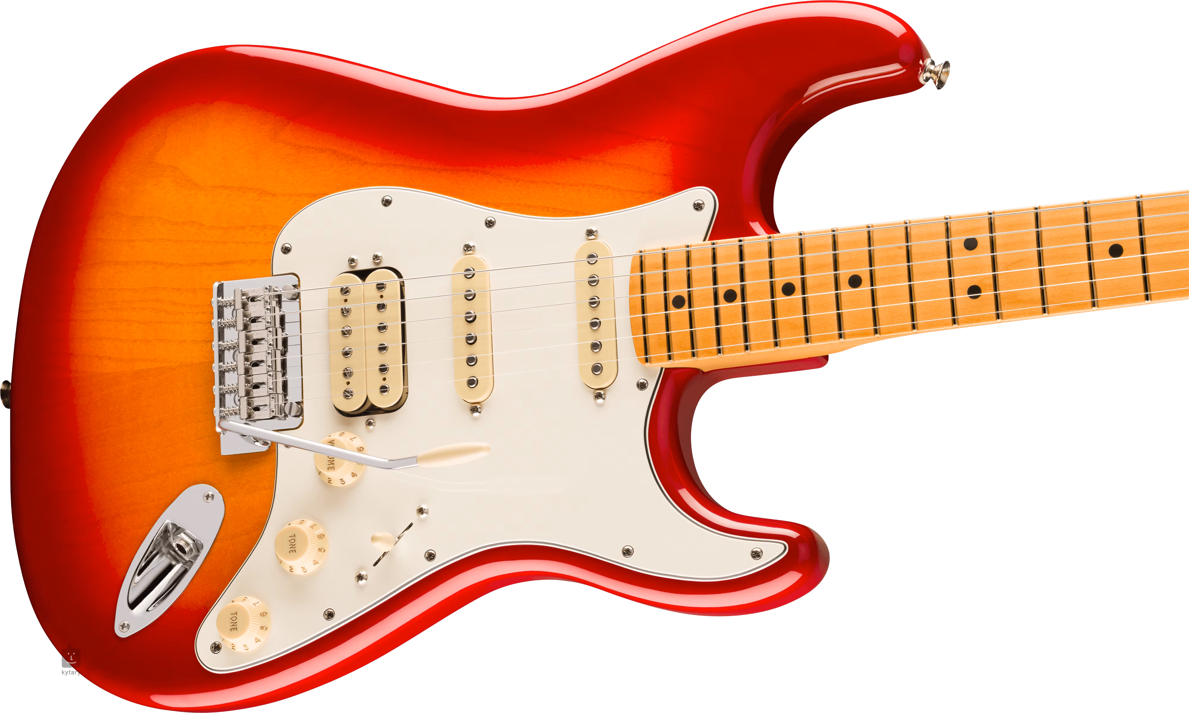 A Player II Stratocaster HSS a Stratocaster dizájn hetvenedik évfordulójának megünneplésekor érkezik a piacra, de inkább a mai zenészek igényeit célozza meg, mint a múltat. A Player II Stratocaster HSS MN ACB könnyű teste kamrás kőrisből készült. A "Modern C" profillal és szatén fényezéssel ellátott juhar nyak és a lekerekített élekkel ellátott juhar fogólap nagyszerű játszhatóságot biztosít.