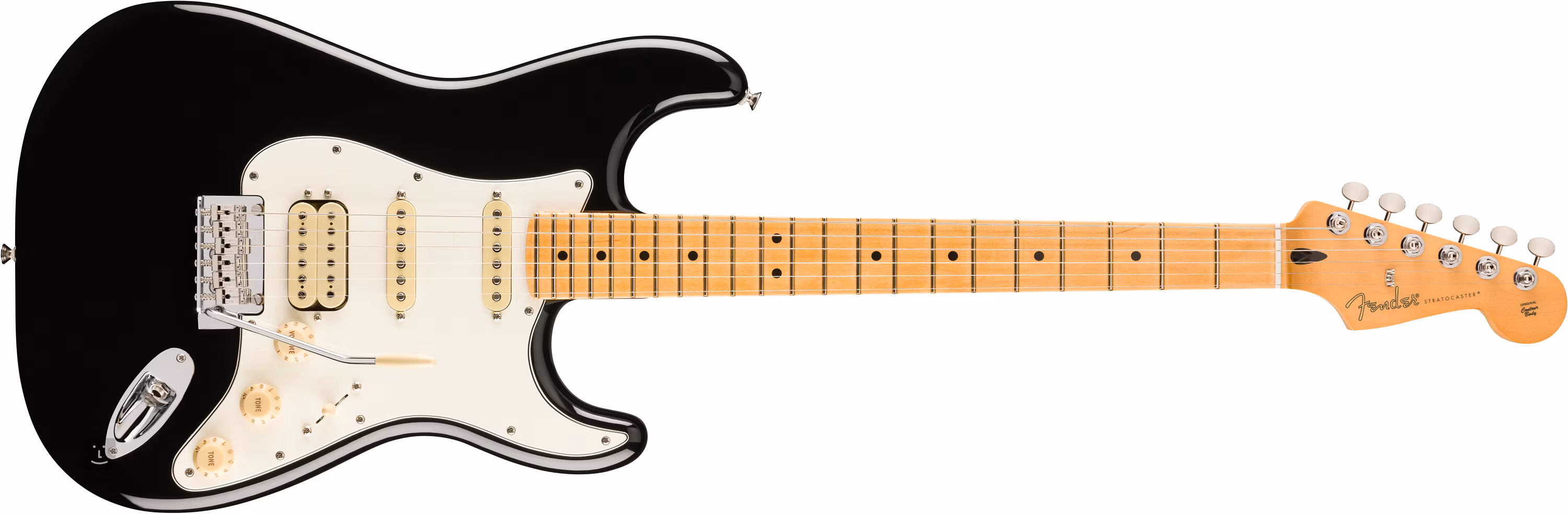 A Player II Stratocaster HSS a Stratocaster dizájn hetvenedik évfordulójának megünneplésekor érkezik a piacra, de inkább a mai zenészek igényeit célozza meg, mint a múltat. A Player II Stratocaster HSS MN BK MN BK égerfa testét fényes poliészter lakk borítja. A "Modern C" profillal és szatén fényezéssel ellátott juhar nyak és a lekerekített élekkel ellátott juhar fogólap nagyszerű játszhatóságot biztosít.