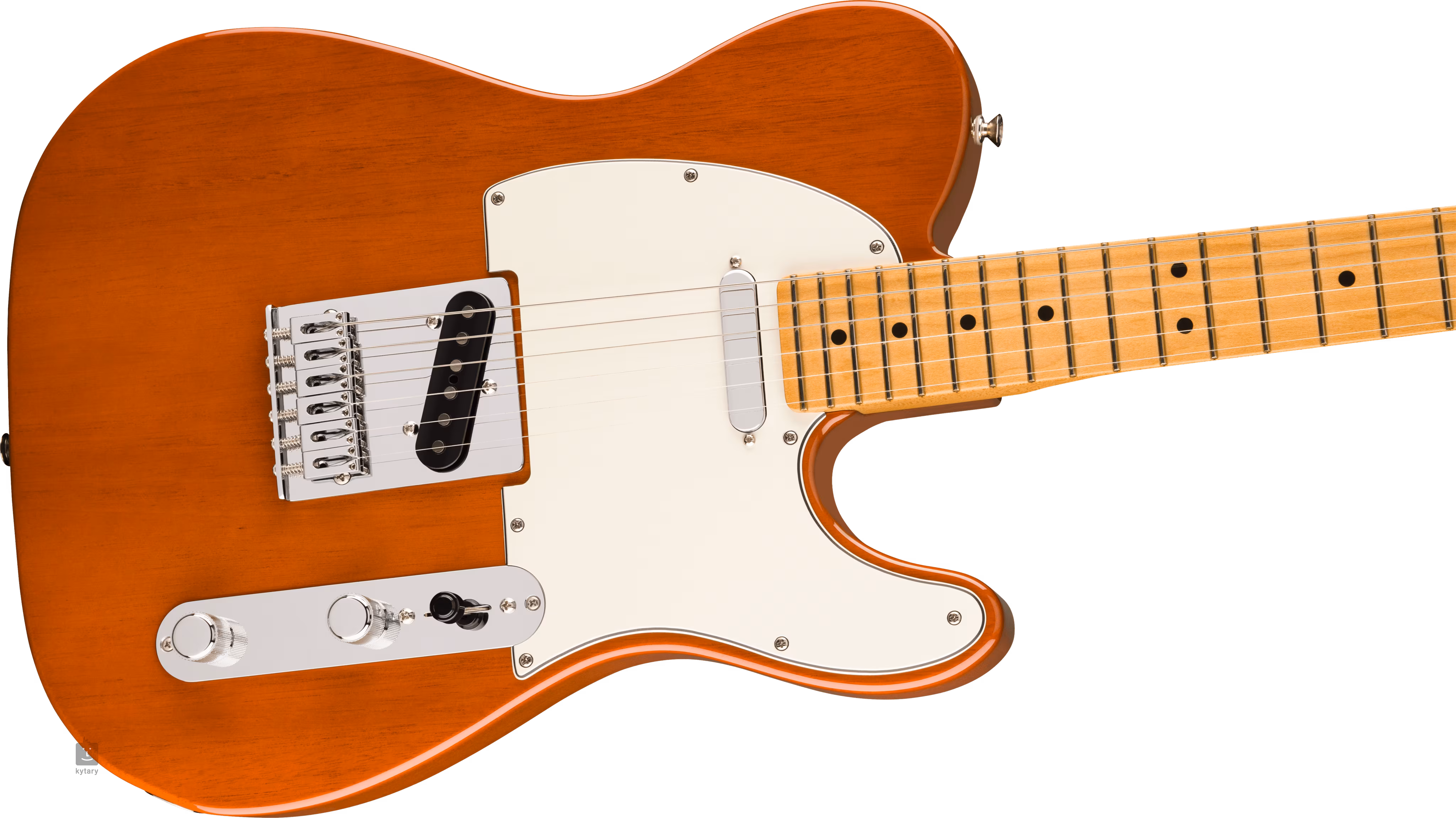 A két Player Series egytekercses hangszedő Alnico 5 mágnessel olyan modern Fender-érzetet és hangzást kölcsönöz a gitárnak, amelyet a zenei stílusok széles skáláján értékelni fogsz. A hangzás karaktere a hangerő- és hangszínszabályzóval, valamint a háromállású hangszedő kapcsolóval manipulálható. A stabil hangolást a húrok 18:1 áttételű ClassicGear fogaskerekekbe való rögzítése biztosítja, a testet átívelő, hat acélnyereggel ellátott masszív hídon keresztül. A gitár stílusos megjelenését a fényes, háromrétegű koptatóvédő és a fényes Mocha fényezés emeli ki.