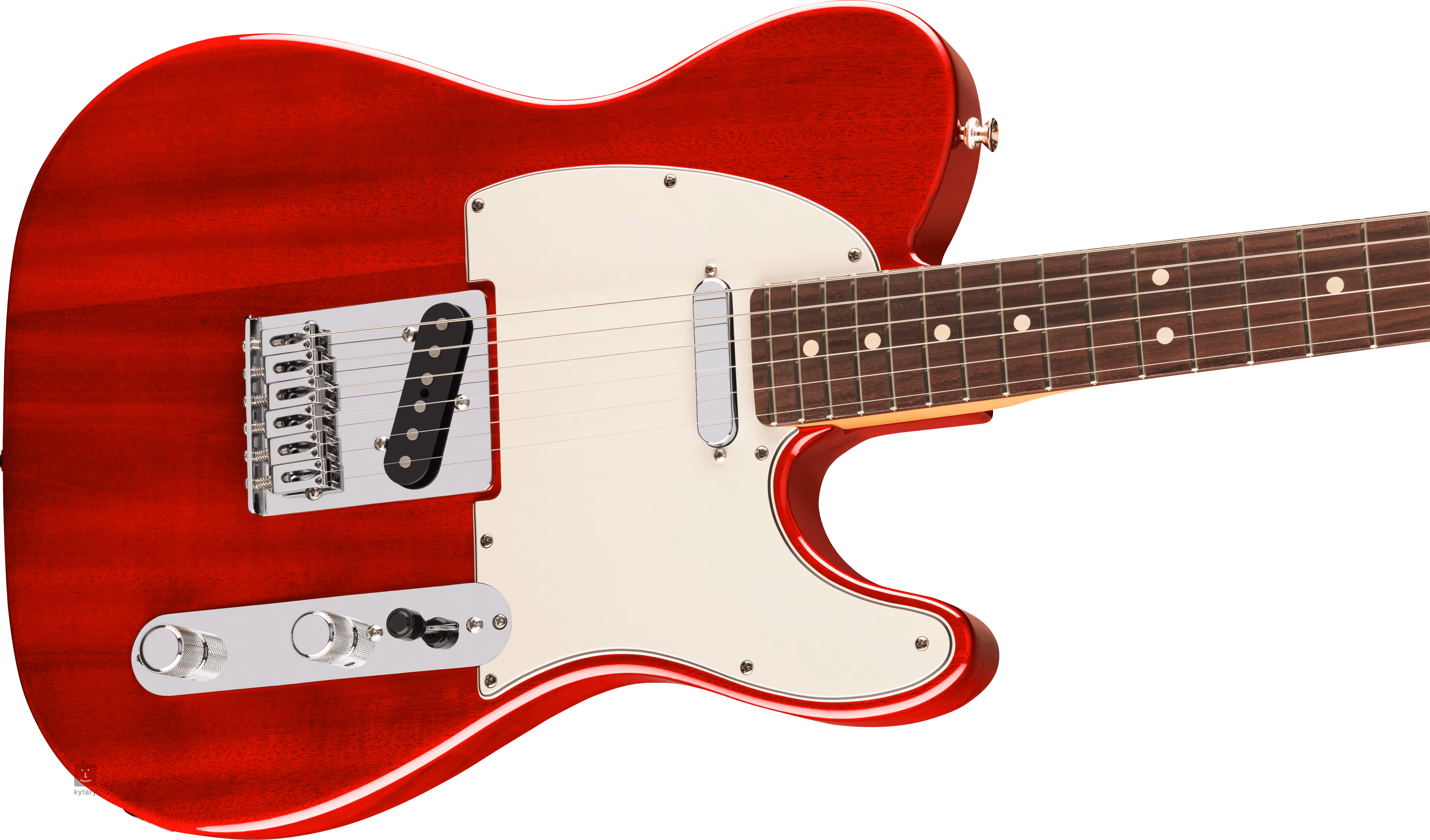 A Player II Telecaster RW CHRY elektromos gitár klasszikus Fender bájt áraszt, de ne tévedj - ez az egyszálas gitár a mai zenészek igényeit célozza meg, nem pedig a múltat. A gitár könnyű teste kamrás mahagóniból készült. A "Modern C" profillal és szatén fényezéssel ellátott juharfa nyak és a lekerekített élekkel ellátott rózsafa fogólap nagyszerű játszhatóságot biztosít.